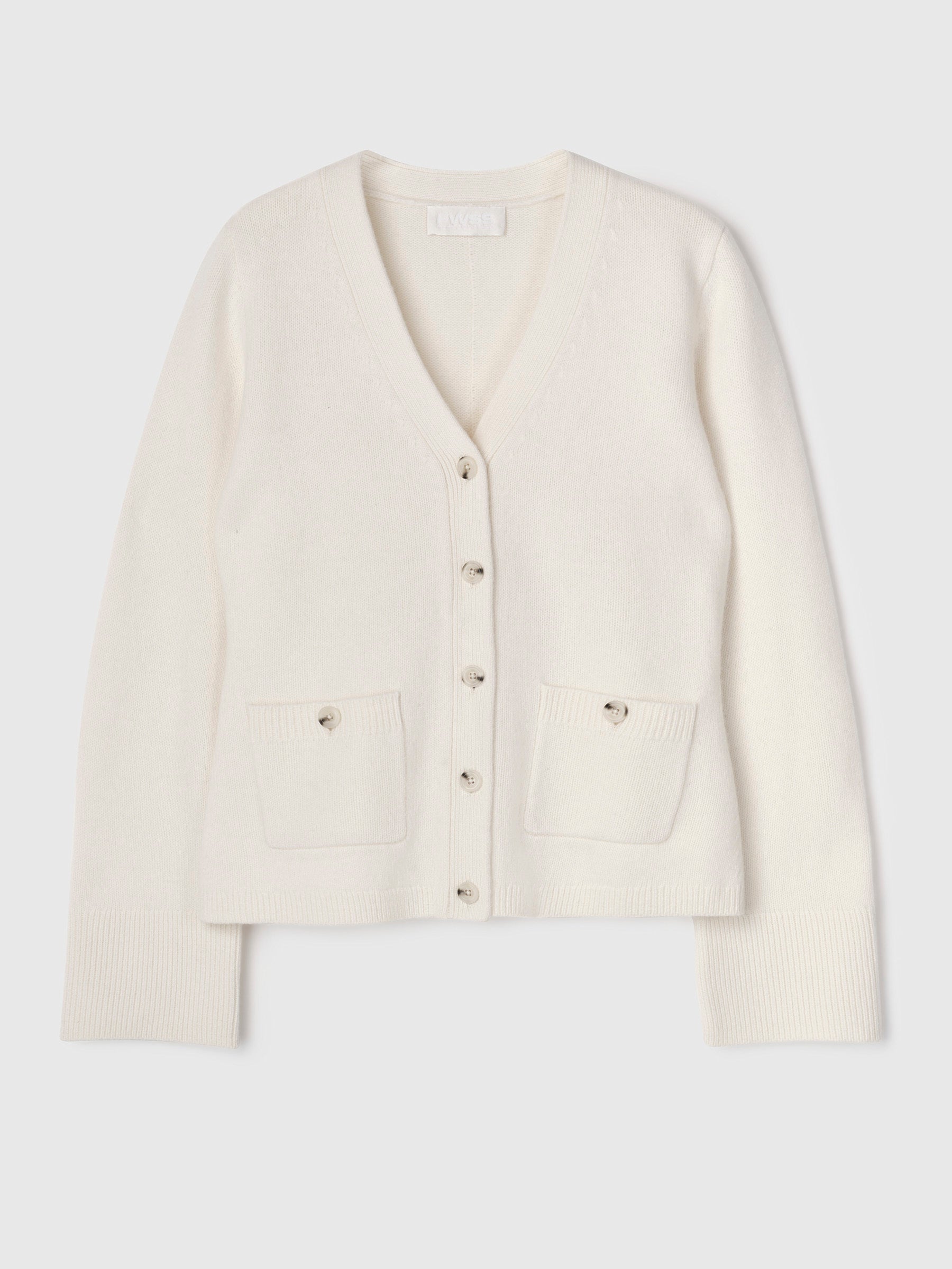 The Adele Cardigan is knitted in 100% brushed extrafine merino wool for a luxuriously soft feel. Designed with a shaped waist, ribbed V-neckline, and button-down front. Bell-shaped sleeves add sculptural elegance. Pair with the Renata Skirt and boots for a refined everyday look.