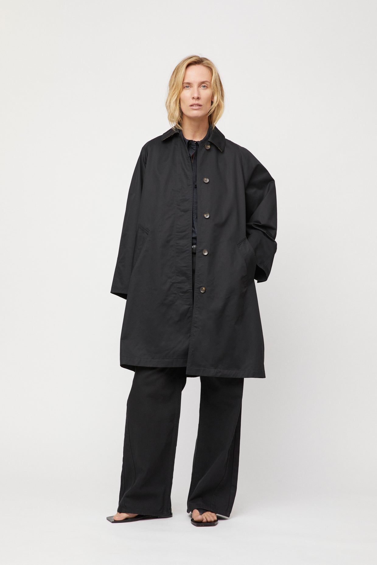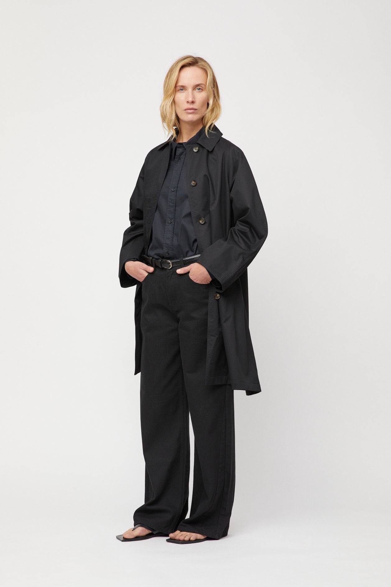 The FWSS Anchorage Trench Coat is an A-line trench coat cut from delicate cotton. With elevated detailing like the checkered lining, practical side pockets with extra depth, and the button-closing slit in the back, this fashionable trench is also highly flexible. Play up the oversized silhouette combined with the FWSS Wide Leg Pants and Structured Wool Cardigan.