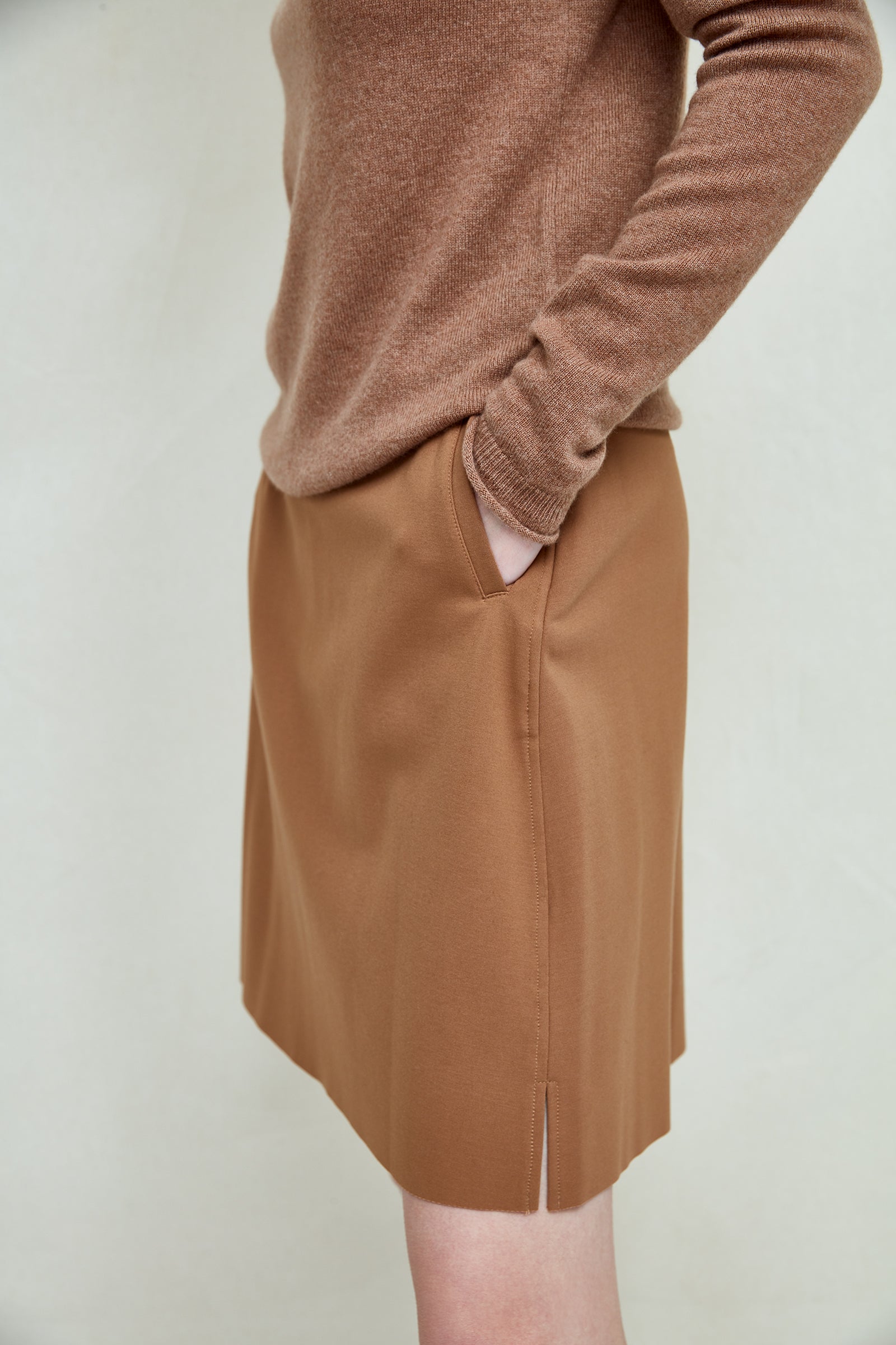 The FWSS Anne-Karin Shirt is an A-line mini-skirt for everyday wear. It is cut from a high stretch ponte fabric that is comfortable and crease resistant. It features a small slit on left side, a clean laser-cut hem and a waistband with an overlapping flap. It has a zipper in the side for easy opening and is the perfect minimalist skirt you can style with anything. It makes an effortless transition from work-to-play.