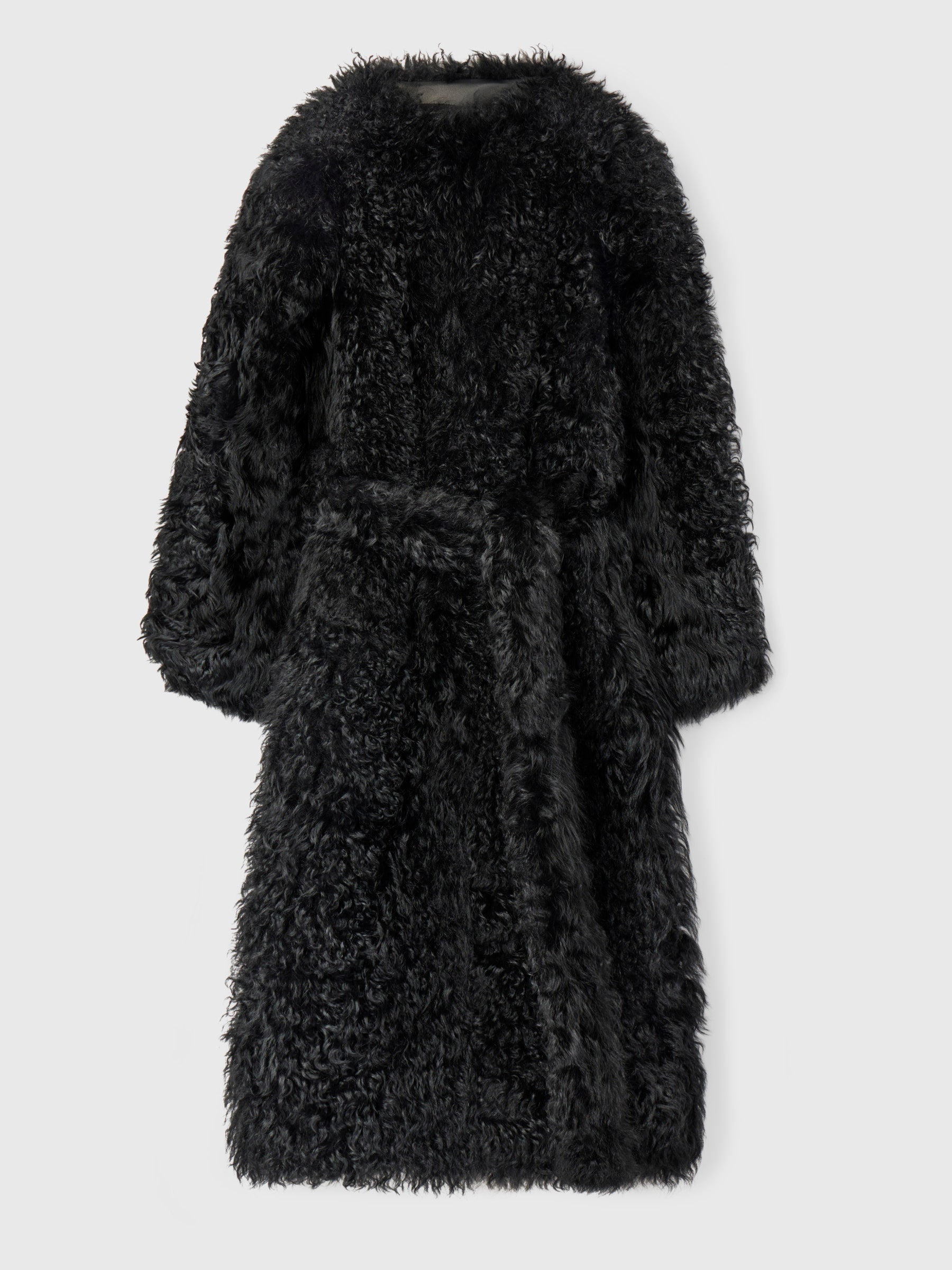 The FWSS Bergamo Shearling Coat in curly lamb shearling brings texture to a classic shape. Fully lined and detailed with clean edges, side seam pockets, and a subtle hook-and-eye closure. A waist belt adds definition and ease, making it a statement piece to carry through the coldest days.