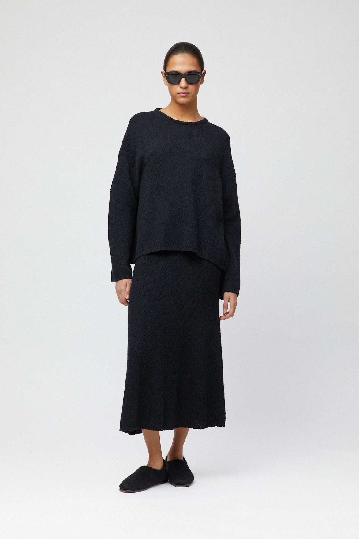 The FWSS Blackrock Skirt is knitted in 100% cotton and designed as an extension of the Blackrock series. The A-line silhouette and elastic tubular waistband ensure comfort and shape. Easy to pair with a basic tee or styled as a matching set with the Blackrock Tee or Sweater.