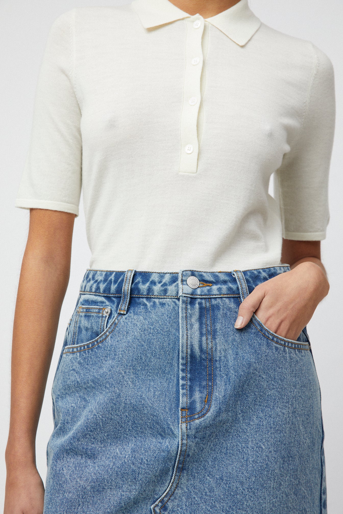 The FWSS Celeste Pique Tee is a summer reinterpretation of an FWSS favorite, now updated as a tee in 100% supersoft merino wool. It features a ribbed front placket with button detailing and a gently fitted silhouette, finished with slightly extended sleeves for a modern, balanced look.