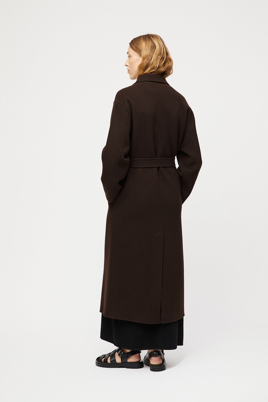 The Doublé Wrap Coat is made from 100% doublé wool – a doublé-woven fabric offering structure and softness. Inspired by 90s silhouettes, it features a maxi length, matching wrap belt, and practical details including side pockets and a back slit. A timeless layer for cold seasons. Style over the Cape Cod Turtleneck and Cigarette Pants for a complete look.