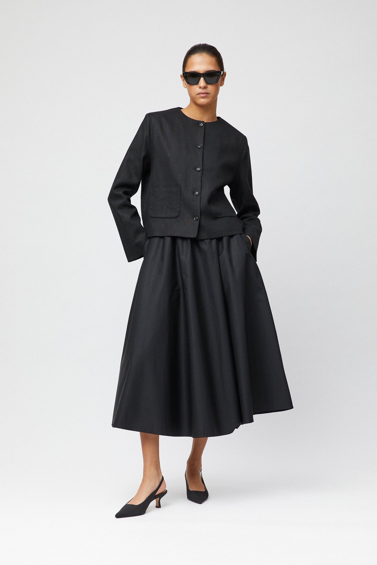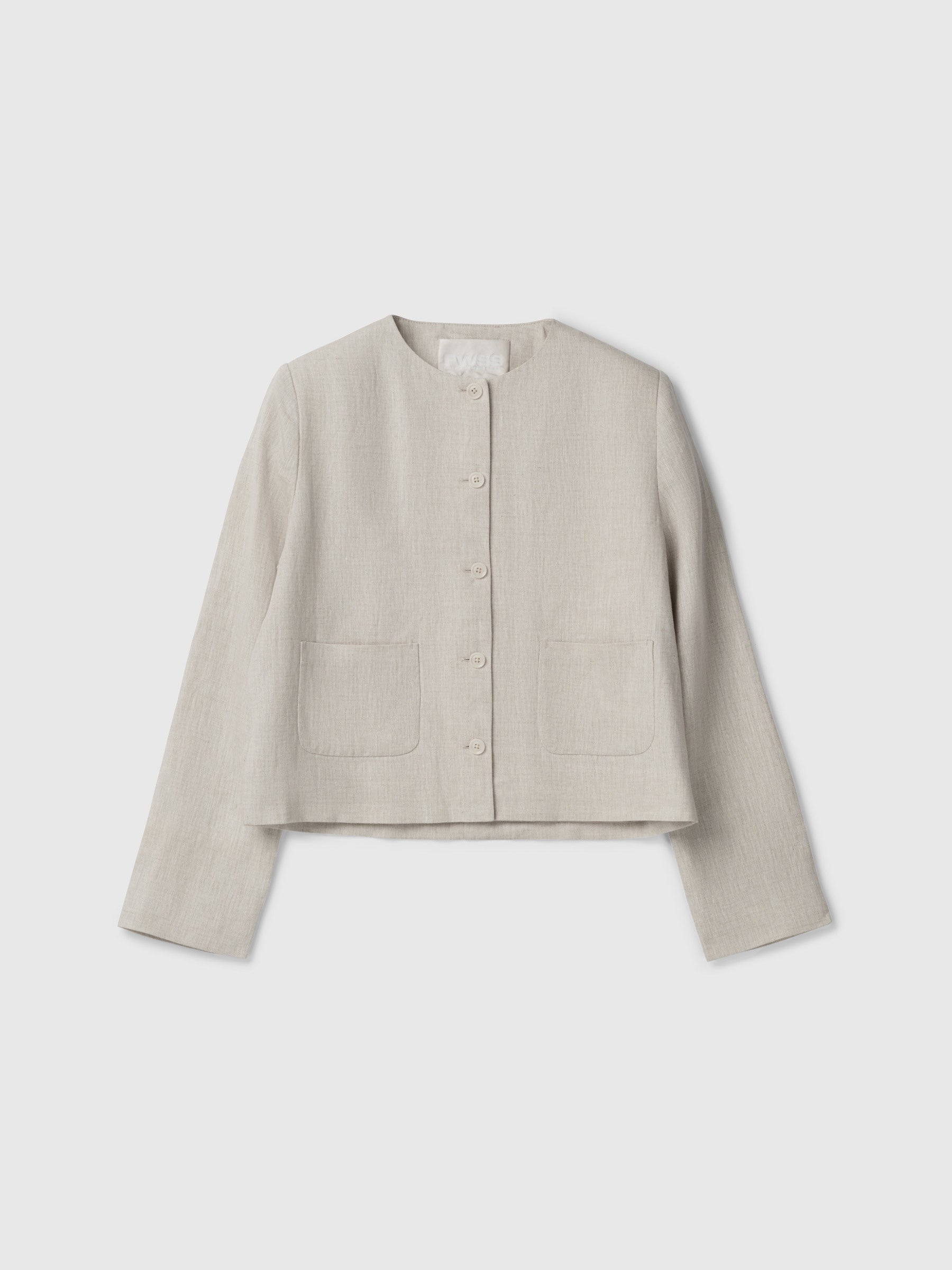Knitted in 100% linen, the FWSS Linen Monaco Jacket offers breathable structure with soft cotton lining for comfort. Based on the Monaco Bouclé Jacket, it features a clean neckline, lightly structured shoulders, and curved patch pockets. Style with denim for a relaxed look or dress it up with the Esplanade Linen Skirt.
