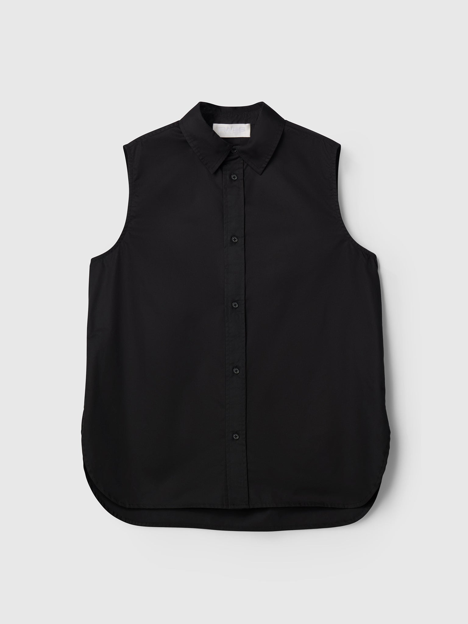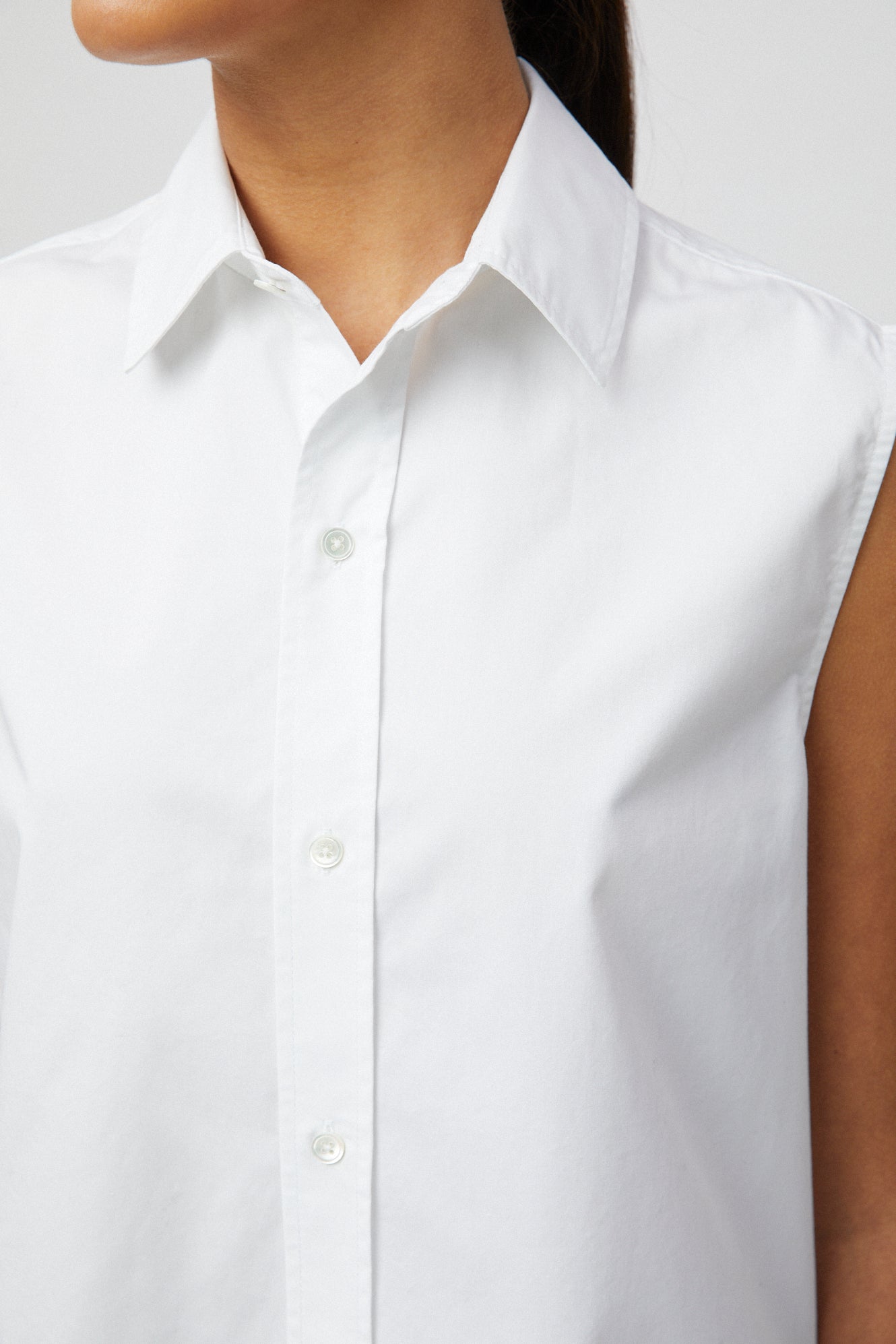Made from 100% cotton, the FWSS Sleeveless Coastal Shirt channels a refined 90s aesthetic. Designed with a back box pleat for added volume and a clean front with delicate buttons. A versatile summer piece that complements the Silk Twill Siena Trousers effortlessly.