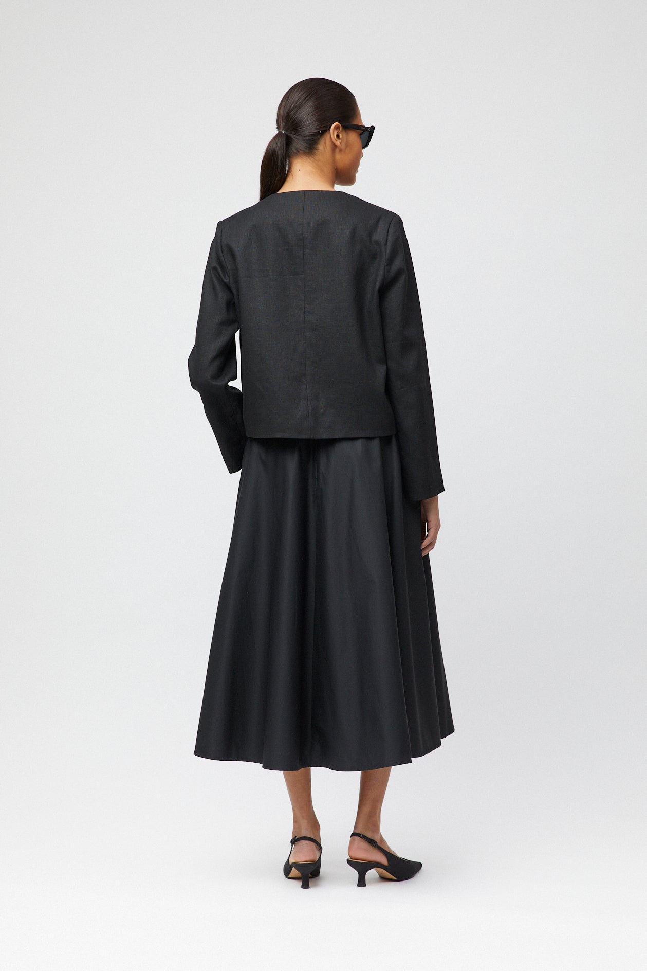 The FWSS Vivienne Midi Skirt is crafted from 100% cotton with a soft, subtle shine. It features a ruched elastic waistband for comfort, hidden side pockets, and an invisible back zipper. The double-layered design adds volume and flow. Style with the Off Shoulder Knit Top for an elevated summer look.