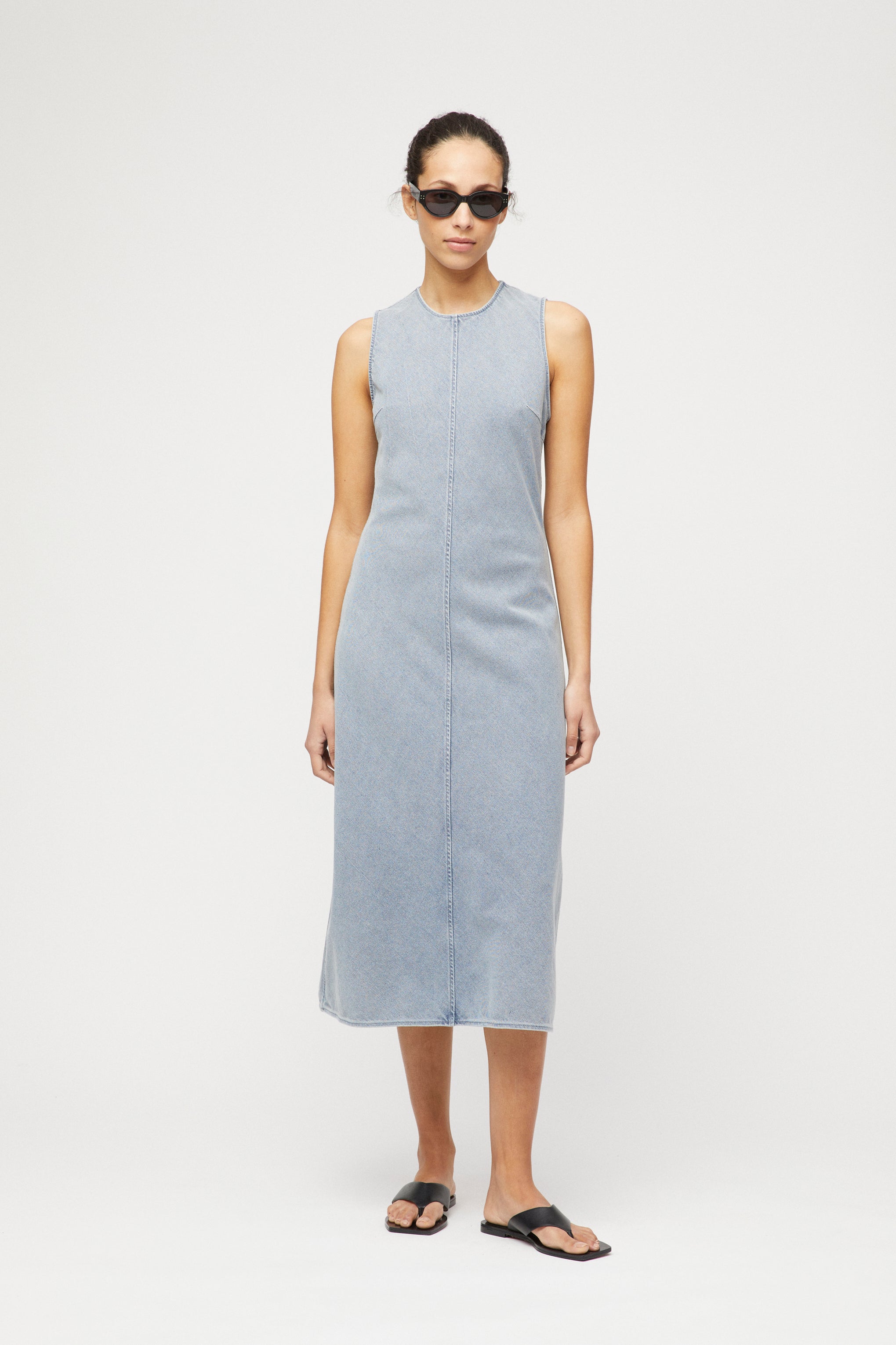 The FWSS Bias Cut Denim Dress comes in an updated shape inspired by the popular FWSS Bias Cut Spark Dress. It's cut from a heavy washed denim, which adds structure to its natural drape, and the bias cut makes the dress shape and move naturally on your body. It has a super comfortable fit with a slightly fitted waist and a practical, invisible zipper in the back. A statement dress that speaks for itself. Pair with sandals for an elevated 90s look.