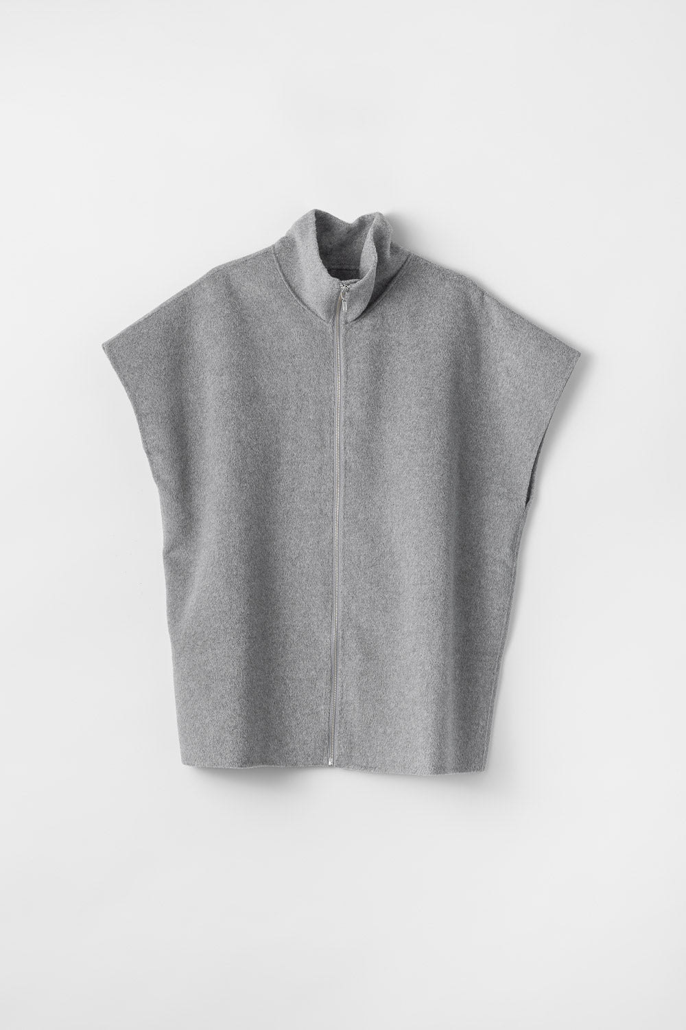 The FWSS Burner Wool Cape is a sleeveless cape cut from a soft and brushed fine 100% wool quality. Hand stitched and beautifully crafted, the piece has exquisite finishing. Features a high neck, YKK metal zipper in front and a subtle center back seam. The cape has a loose fit and the quality drapes nicely, making the cape a perfect layering piece for when the warm days cool down to chill summer nights.
