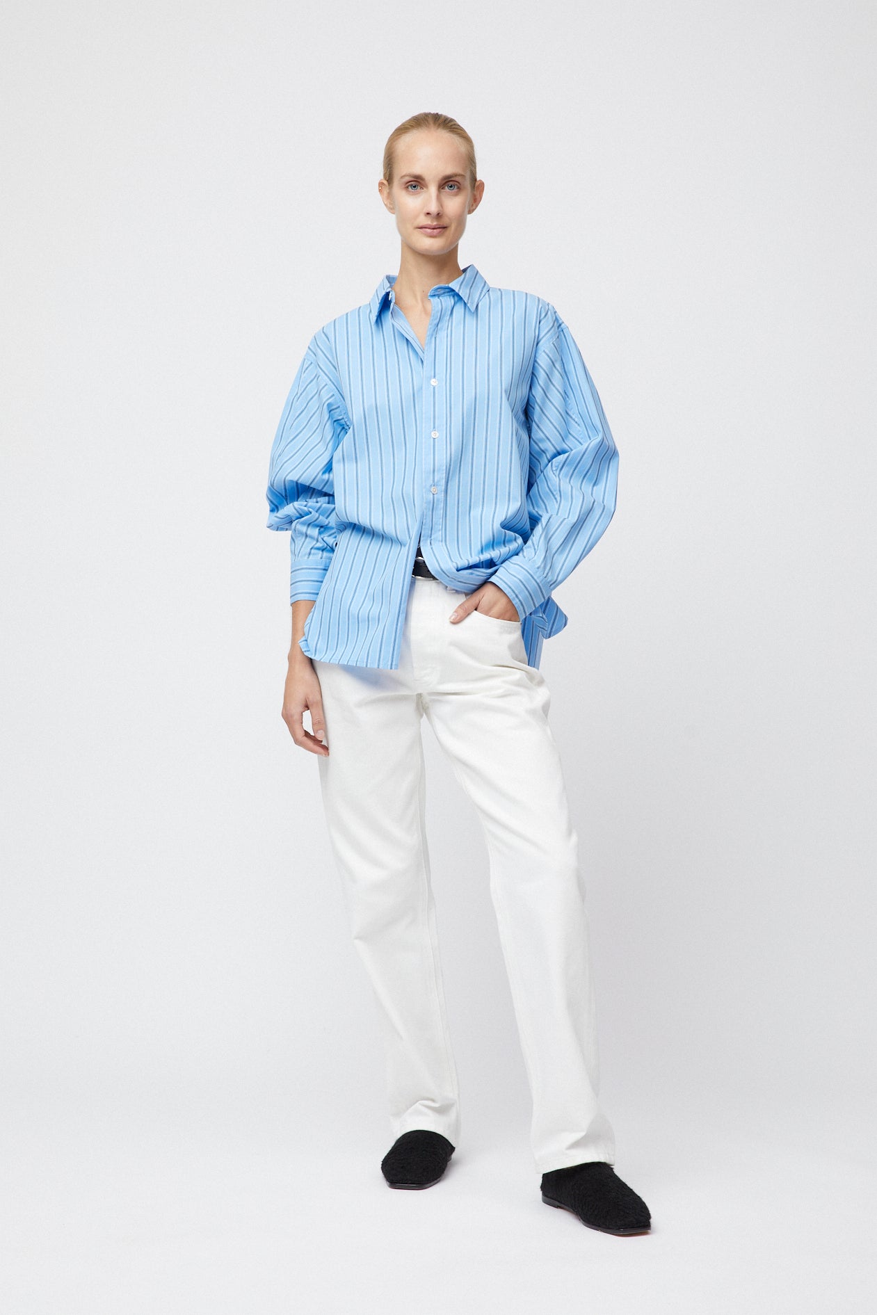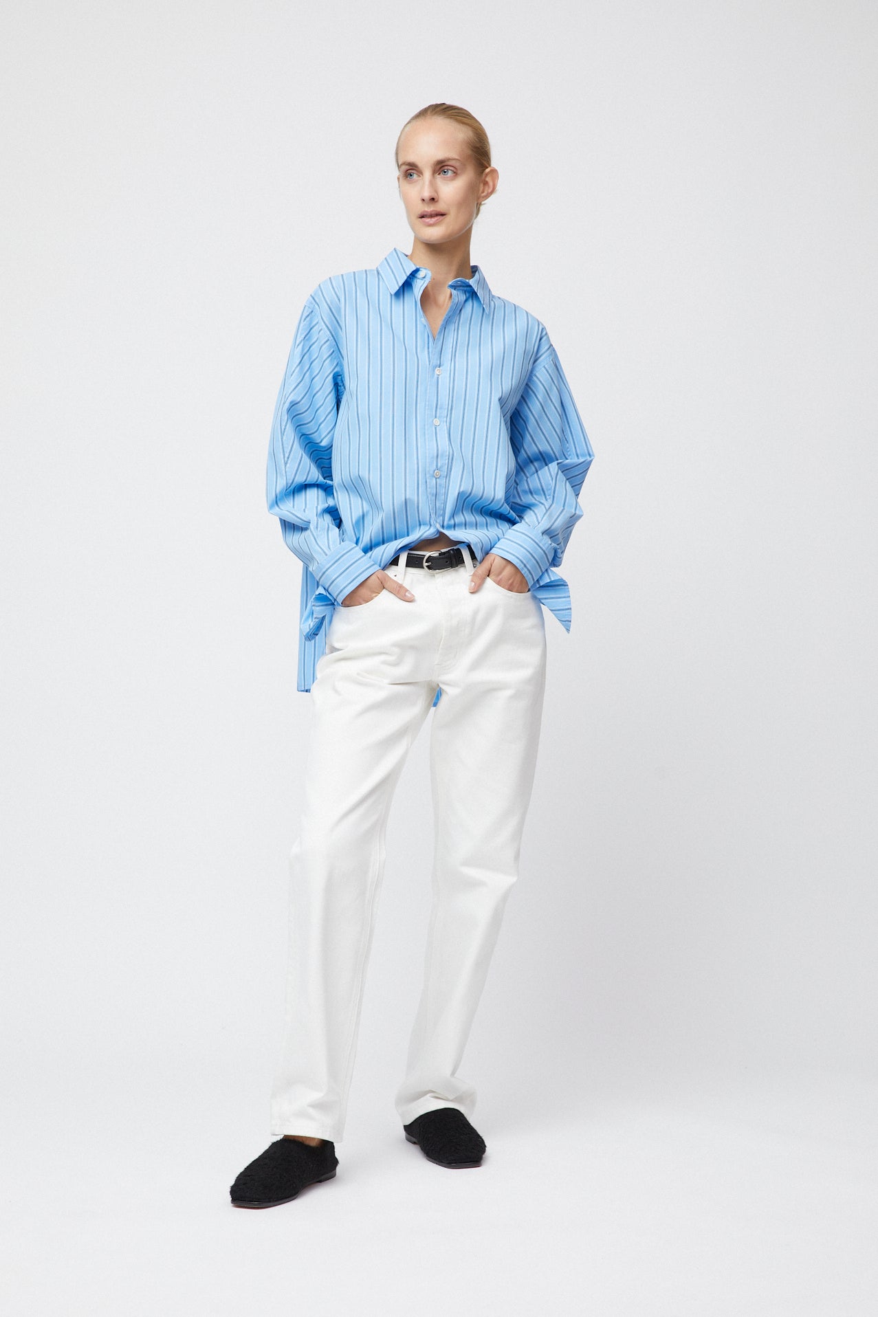 The FWSS Oxford Coastal Shirt is cut from 100% sturdy cotton in a boxy yet feminine silhouette. A button-down collar and crisp lines add a refined look, suitable for work or casual occasions.