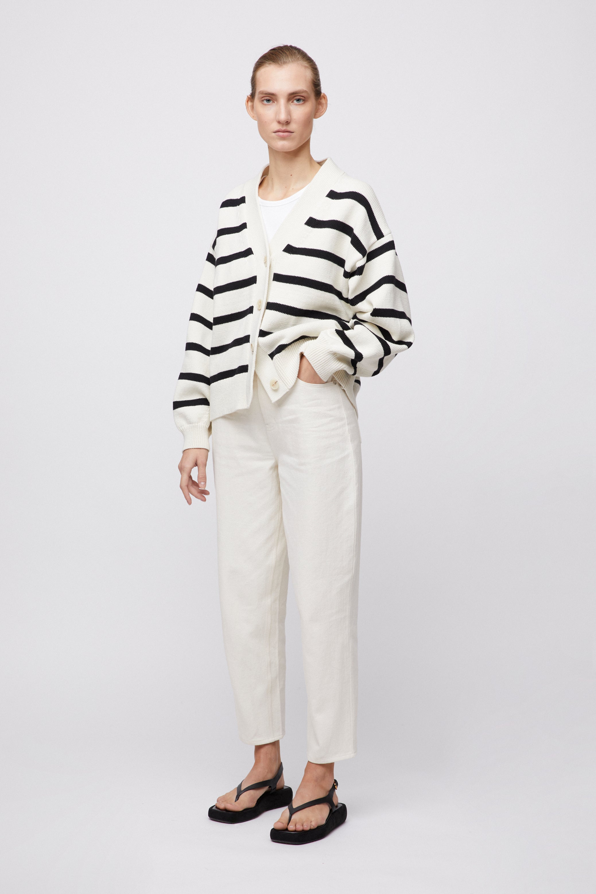The FWSS Cotton Mooring Cardigan is knitted in dense, luxurious 100% pure cotton. With a relaxed, subtle curved hemline and over-dimensioned raglan sleeves featuring fully fashioned detailing. A signature East/West silhouette is finished with delicately marbled buttons and chunky rib at button down placket, hemline and cuffs. This cardigan will certainly be your go-to piece for summer! Pair it with FWSS tailoring or a broderie anglaise skirt for an elevated look.