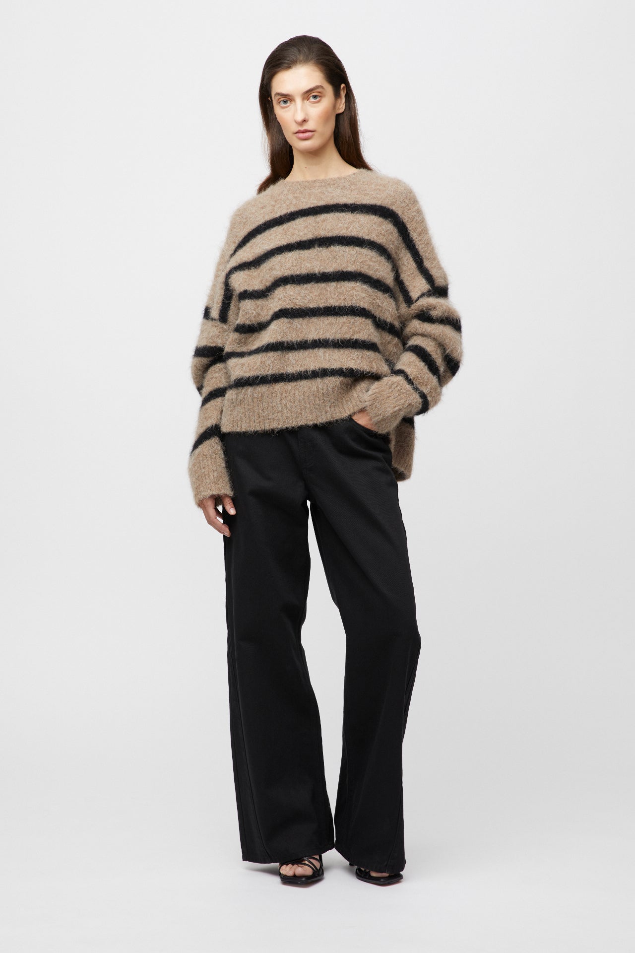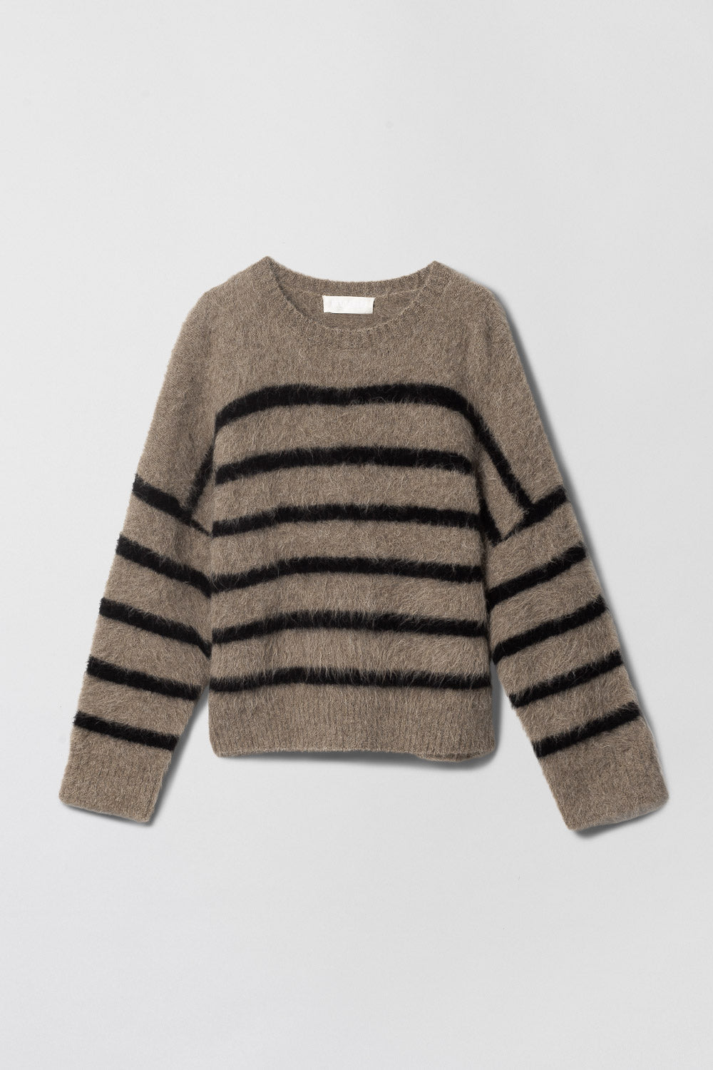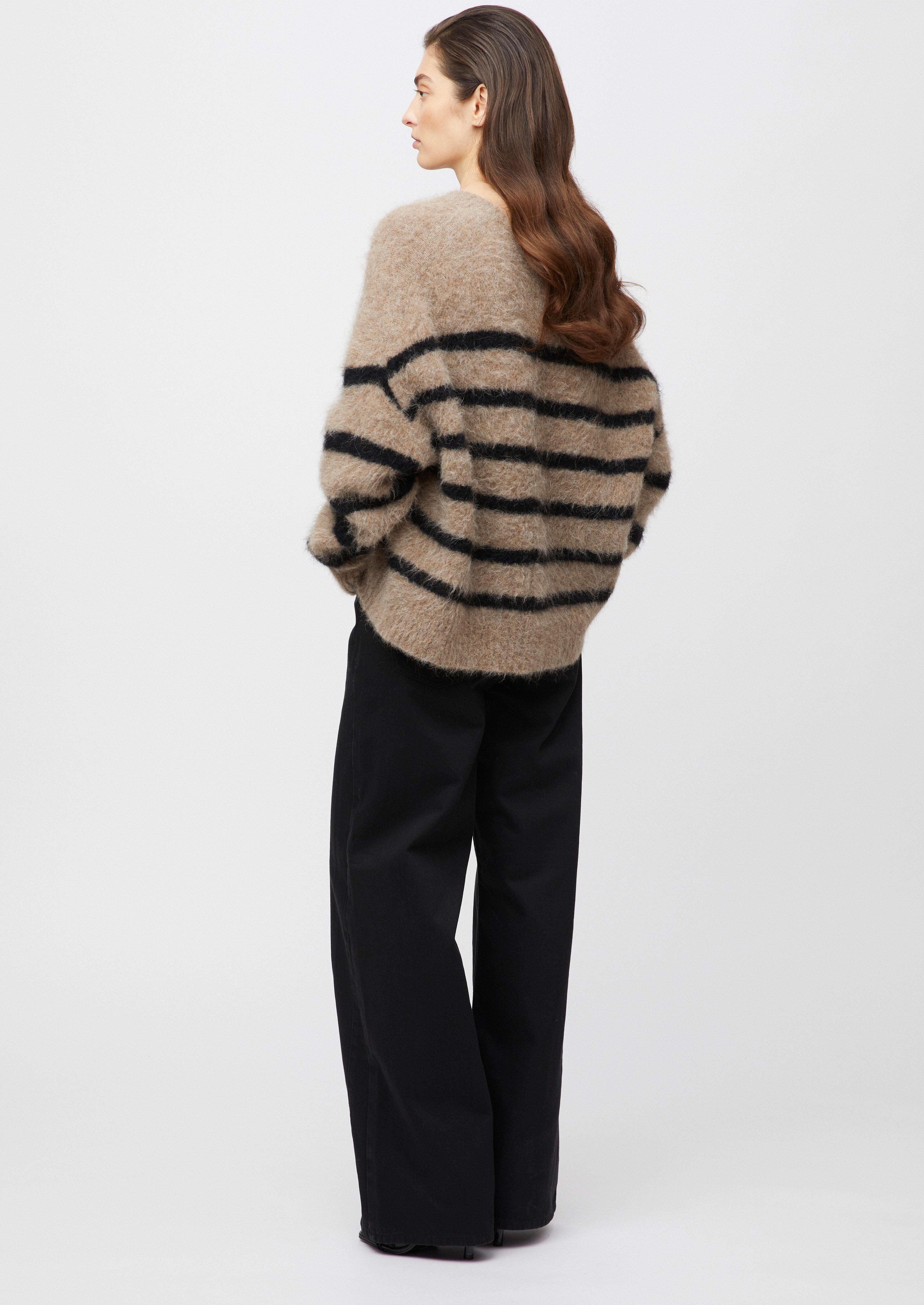 Mountain Oversized Furry Jumper Black Brown Stripe