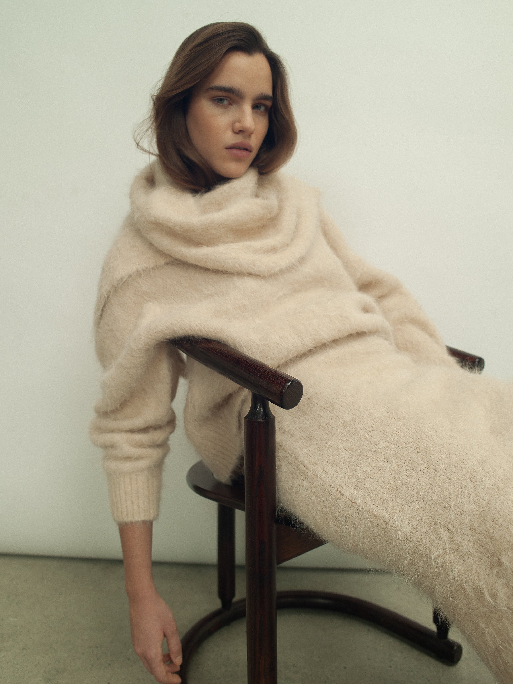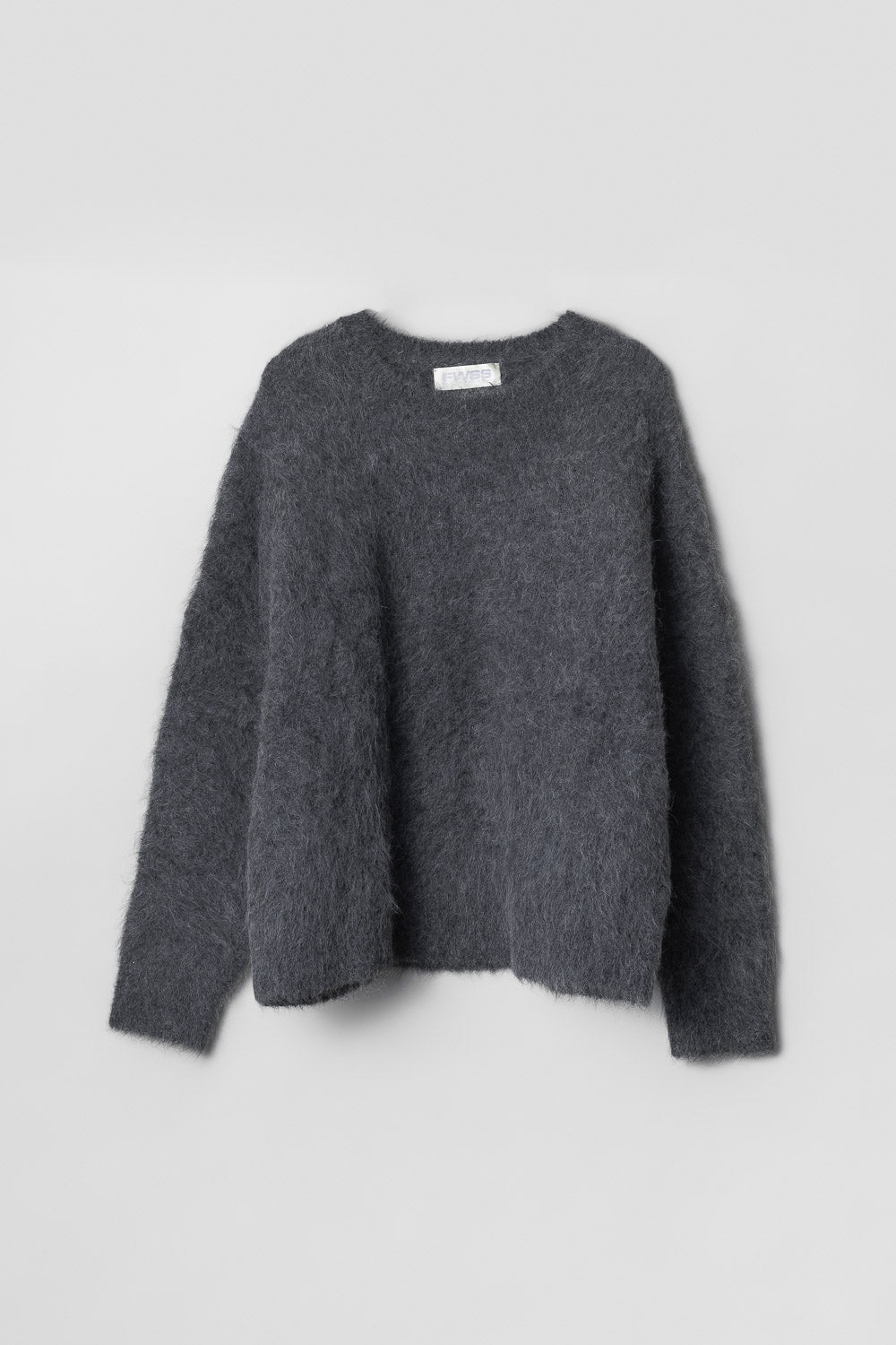 The FWSS Mountain Oversized Furry Jumper is knitted in a fluffy alpaca wool blend. This supersoft and textural jumper has an oversized fit, cozy round neckline and relaxed sleeves with delicately ribbed cuffs. The perfect companion this season designed for warmth, comfort and an elevated winter look.