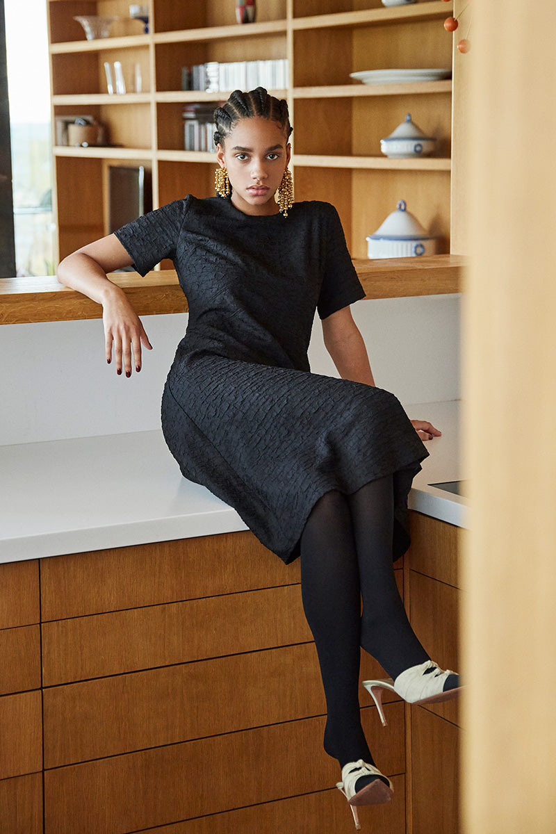 The FWSS Pauline 2 is a short sleeved midi length dress with a flattering silhouette. Cut from a nicely textured quality, it features a clean neck opening, decorative cutlines that compliment the body, zipper at upper back and in side seam for easy wear. The dress comes lined. A piece perfect for the upcoming holiday festivities.