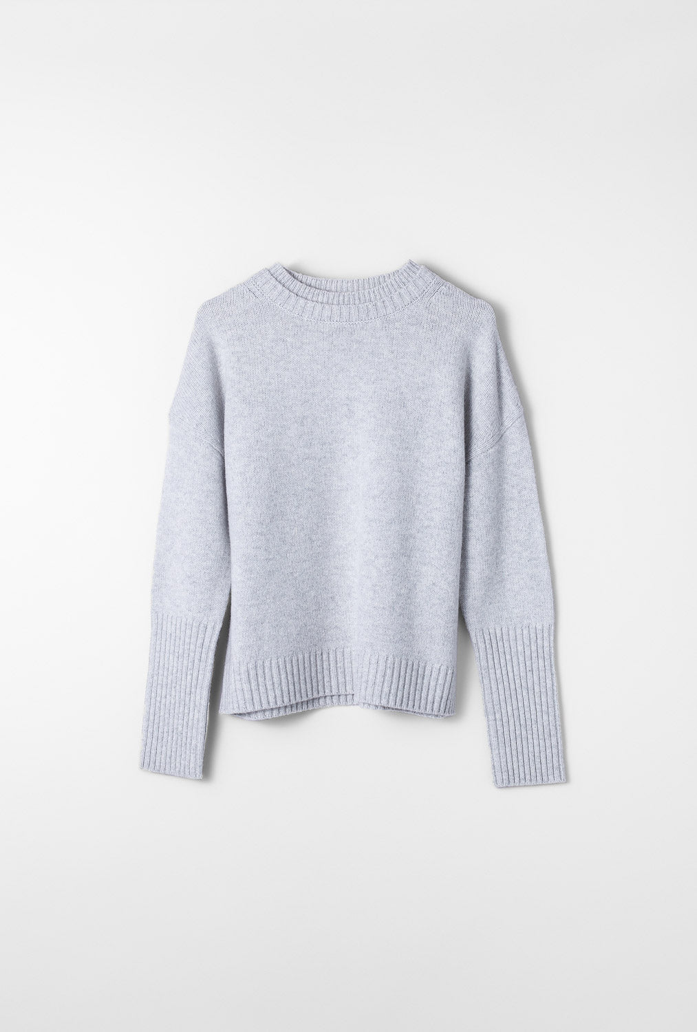 Pink Sweet Peas Mock Neck Jumper Light Gray Melange