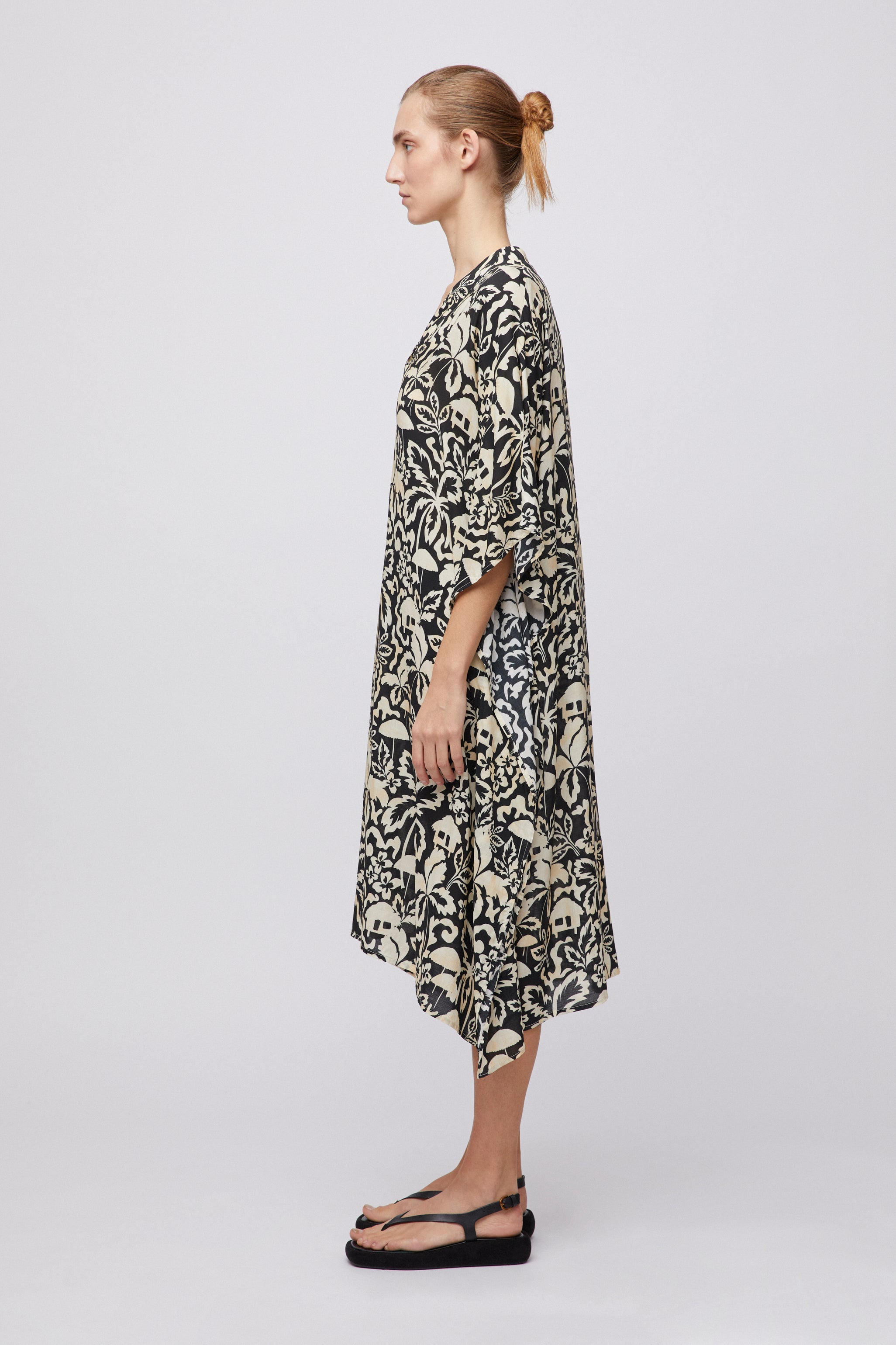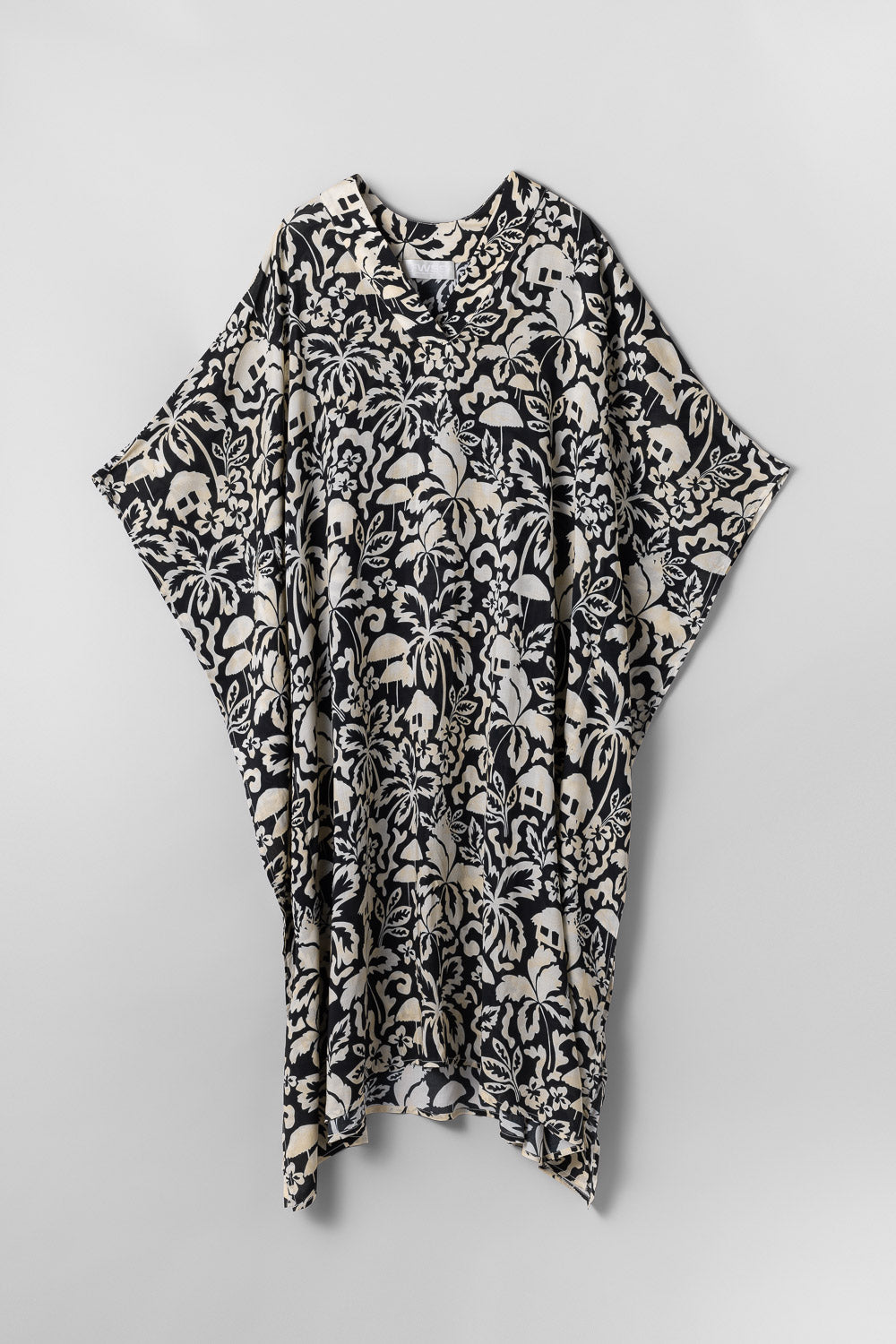 The FWSS Resort Kaftan is made in flowy 100% viscose with a butter soft, lightweight handfeel. Featuring our signature seasonal tropical print, this is the perfect throw over piece sure to be a holiday favorite. The print has a yellow tea-spilled effect for the perfect vintage look. Pair it with delicate sandals and a big straw bag for a luxurious tropical vibe.