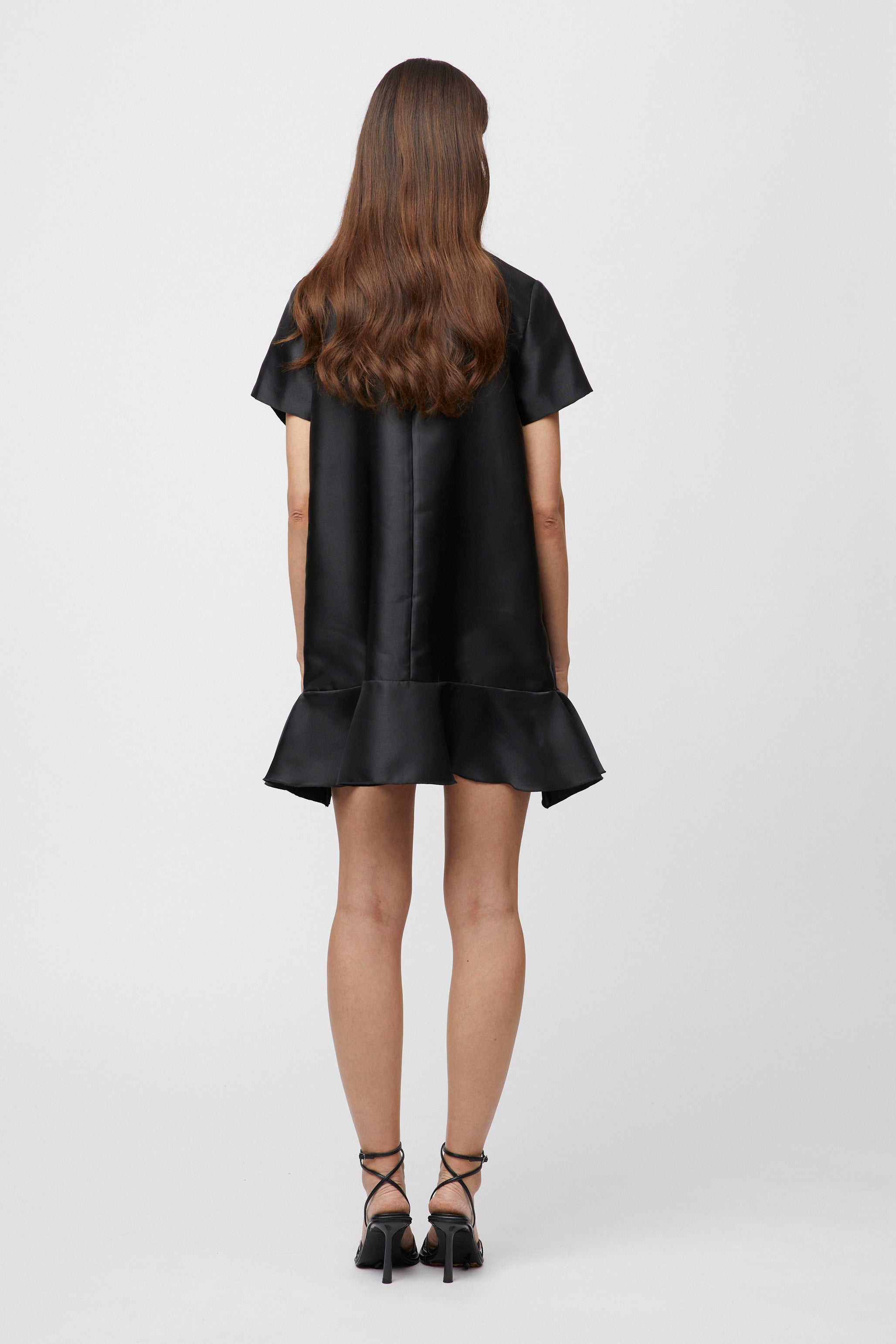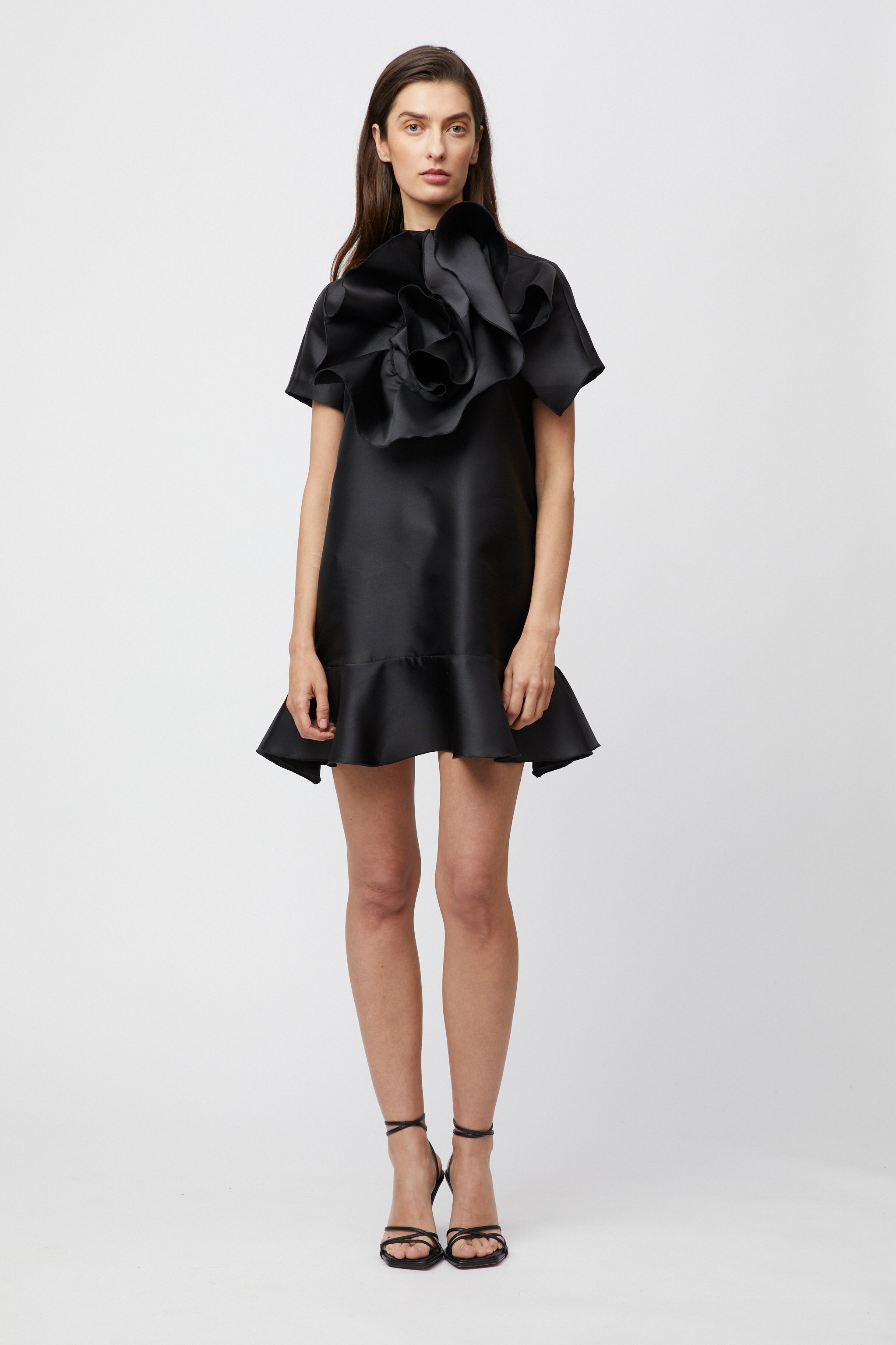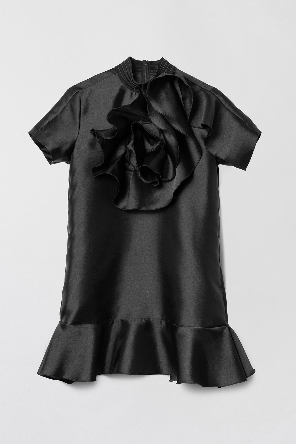 The FWSS Rococo Frill Dress is an exclusive piece in the Winter 2023 collection. The silhouette is designed in a slightly A-line shape with delicate flounce details. This cool style comes in a mid-tight length with an invisible zipper in the back and elastic semi-high neck for practicality and comfort. The added structure in the fabric provides a flowy, luxurious feel when worn. The overdimensional flower frill makes the dress not only fashionable but also playful and fun. This is the perfect piece to wear to a dinner party and feel comfortable all night long. Style with patterned tights and riding boots for a statement look.