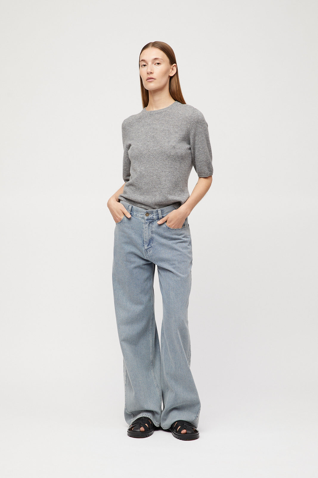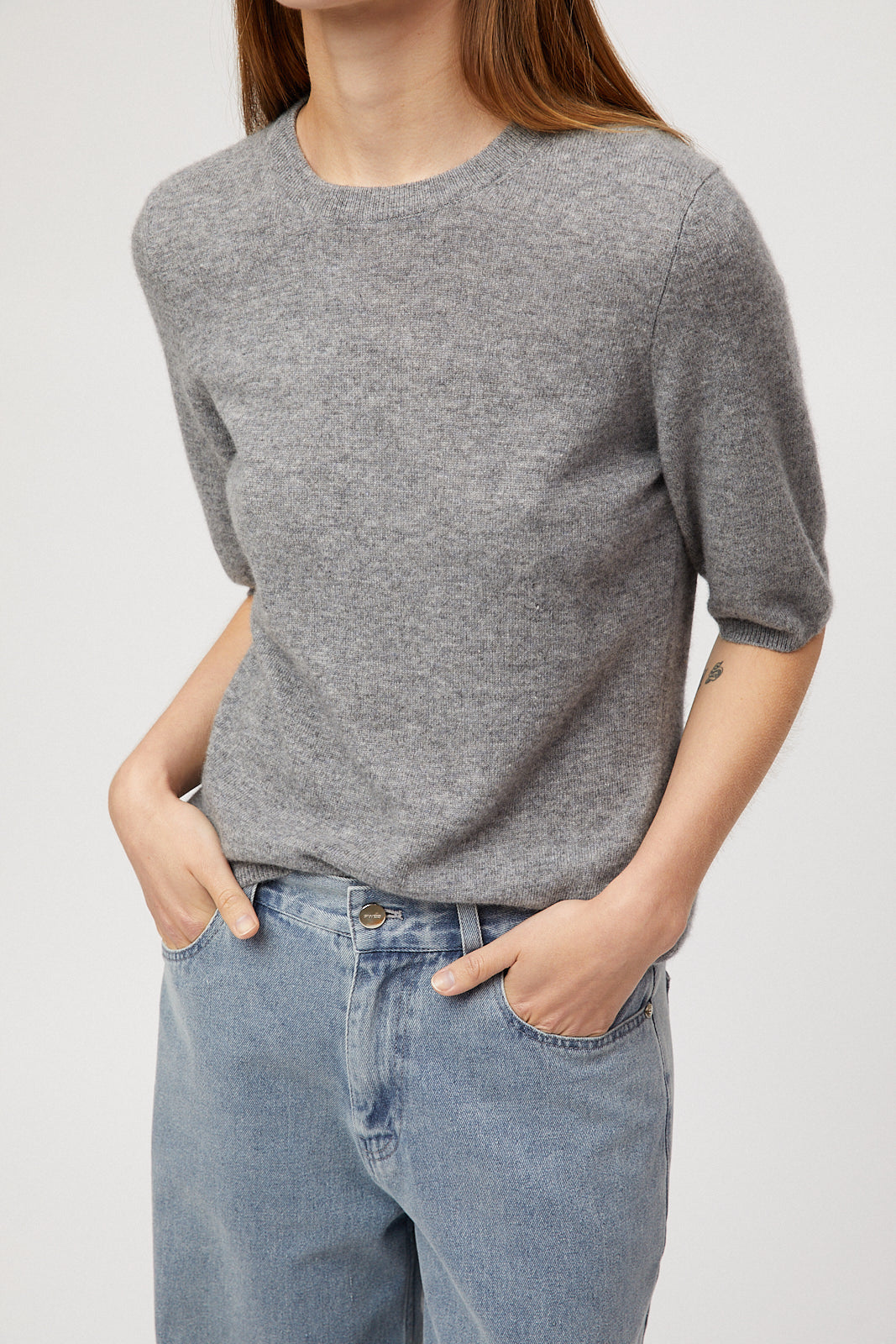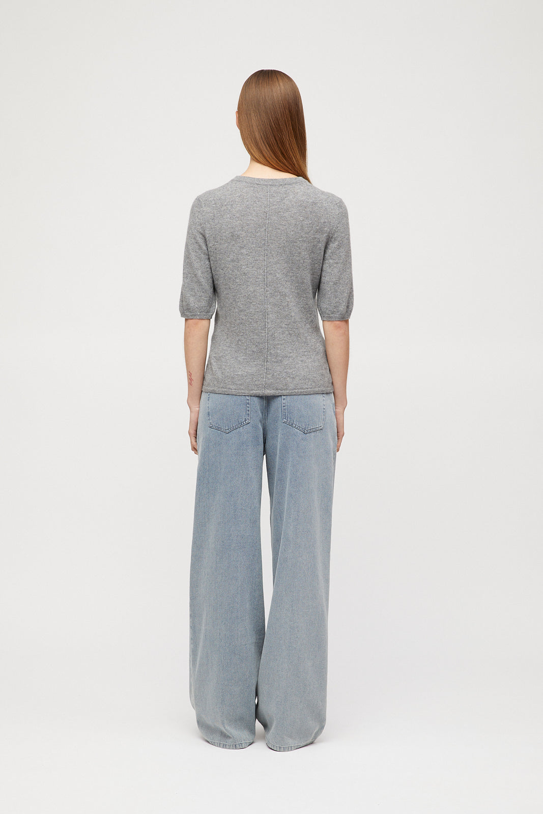 The FWSS Sabine Tee is crafted from 100% super soft cashmere yarn, providing comfort and a luxurious feel. This delicate tee has classic 90s details such as a relaxed silhouette with a ribbed crew neck and sophisticated fully fashioned detailing in the back. A piece that seamlessly transitions from day to evening, ideal for both casual and formal occasions. Whether you pair it with jeans, or layer it under a blazer for a more polished look, it remains a versatile addition to any wardrobe.