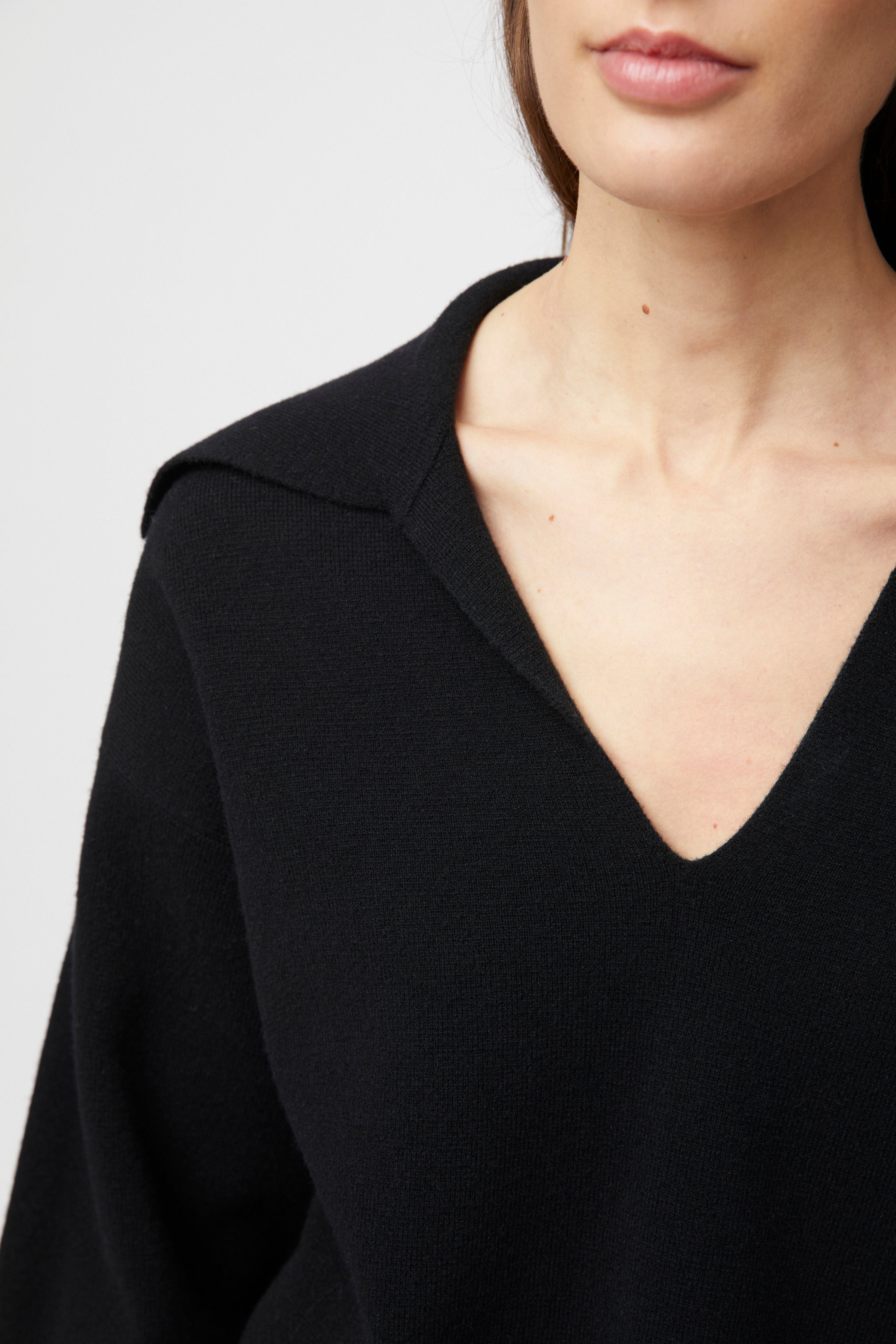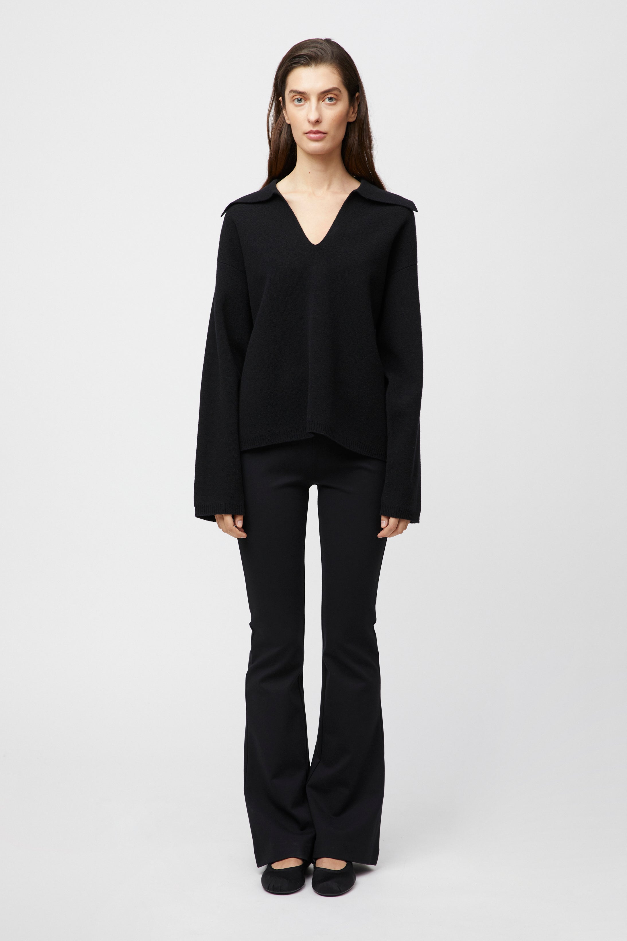 The FWSS Storm Knit Jumper is delicately knitted in extra-fine merino wool that comes in two neutral hues and barley stripes. This soft jumper has a nicely cut V-neck and a sharp collar. For an effortless outfit, style with the FWSS Barrel Leg jeans or Tailored Wool Flares.