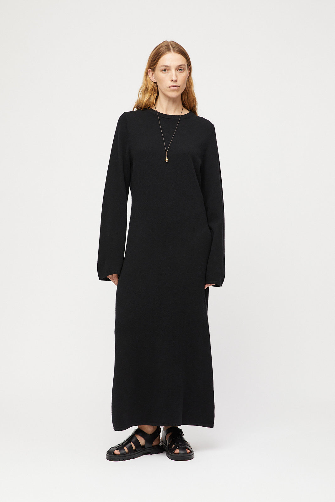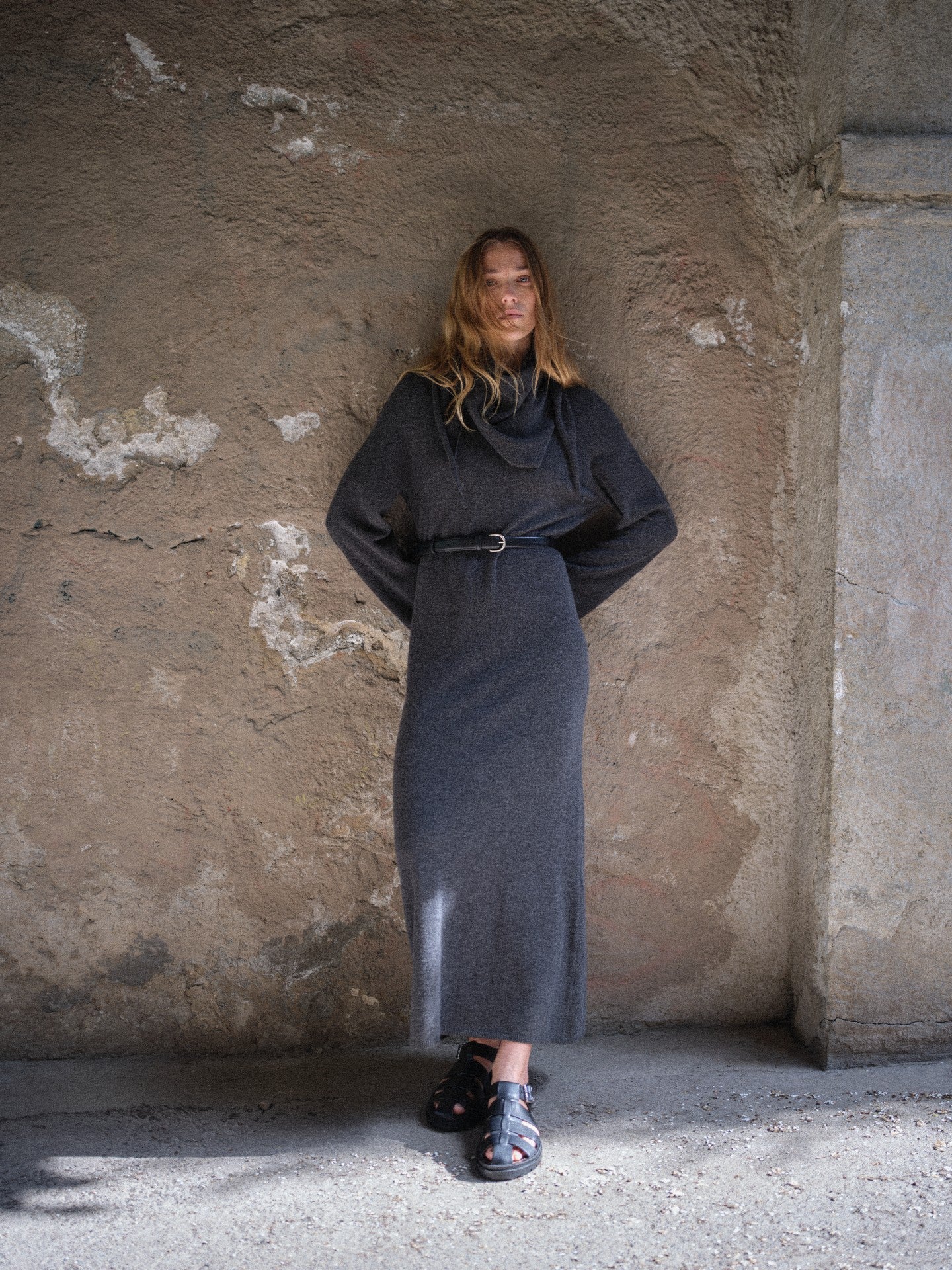 The FWSS Toulon Maxi Dress is a luxurious extension of the beloved Toulon Tee, with added elegance and warmth for those chilly fall days. Knitted from super soft brushed extrafine merino wool, this dress ensures both comfort and coziness, while maintaining a sophisticated look. The design features long, bell-shaped sleeves and a comfortable shaped waist, enhancing a feminine silhouette. With its above-ankle length, the Toulon Maxi Dress pairs perfectly with riding boots for a refined look.