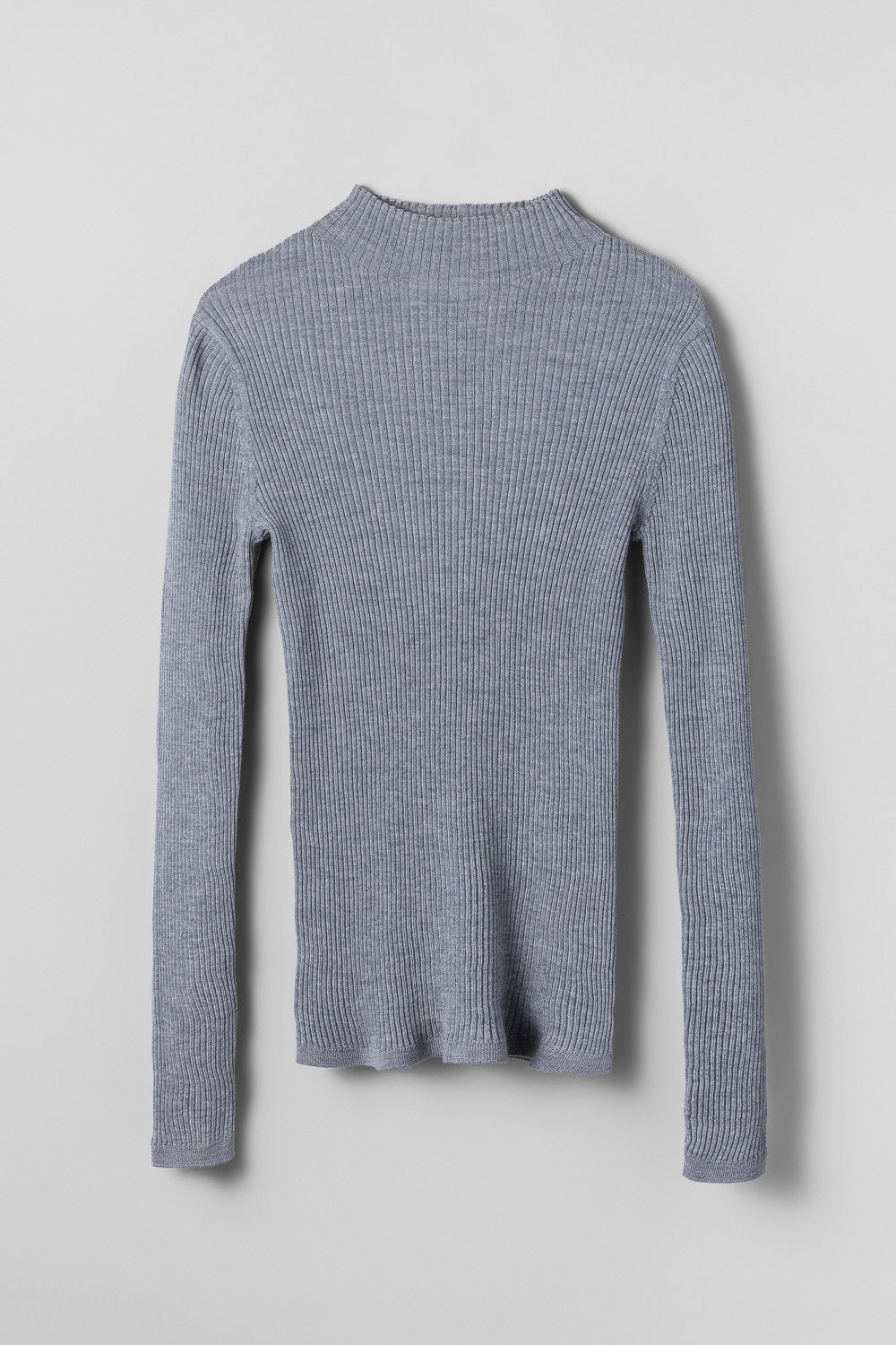 The FWSS Waterfalls Rib is a ribbed mock-neck with a figure-hugging fit made from a soft merino wool blend. With its simple yet elegant silhouette, gentle details and high-quality material, this piece is an easy match for any outfit and makes a perfect staple investment.