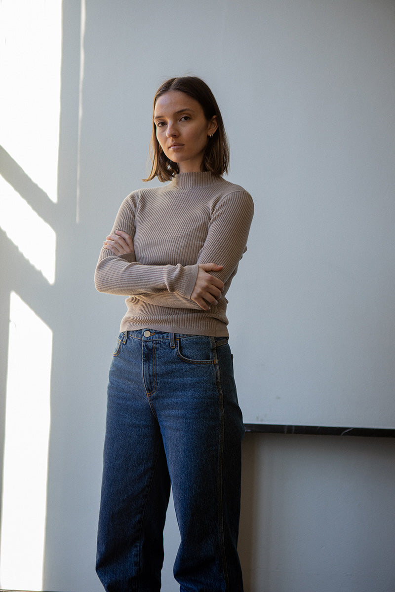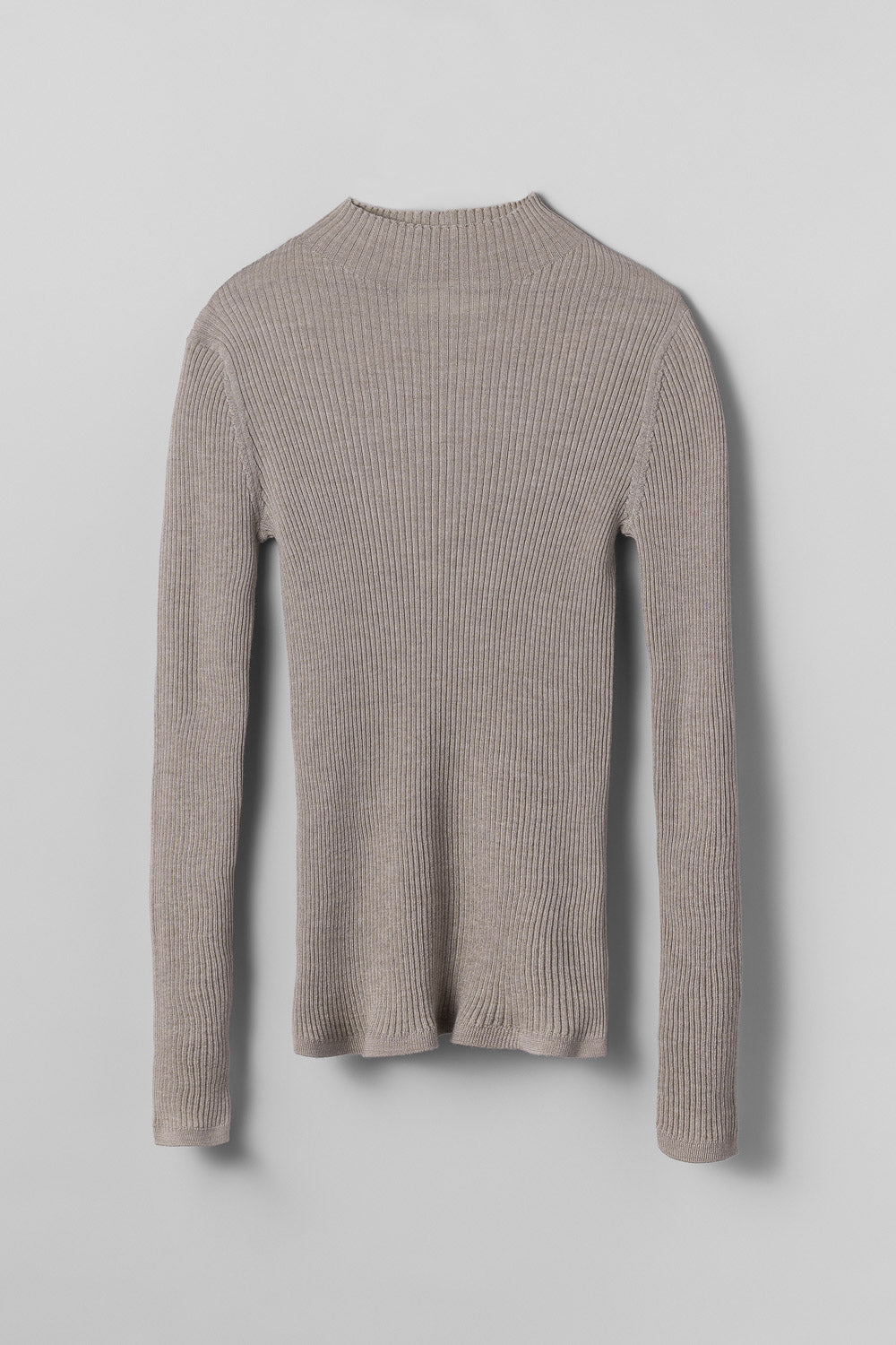 The FWSS Waterfalls Rib is a ribbed mock-neck with a figure-hugging fit made from a soft merino wool blend. With its simple yet elegant silhouette, gentle details and high-quality material, this piece is an easy match for any outfit and makes a perfect staple investment.