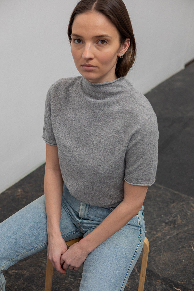 The FWSS Waterfalls Tee is short sleeved lightweight pullover made of a super soft 100% cashmere yarn. It has a regular fit and features pleasant details like a semi-high neck, rolled hem at cuffs and a center back seam. Made from a luxurious lightweight yarn and the clean silhouette makes this an ideal layering piece or a stand-alone.