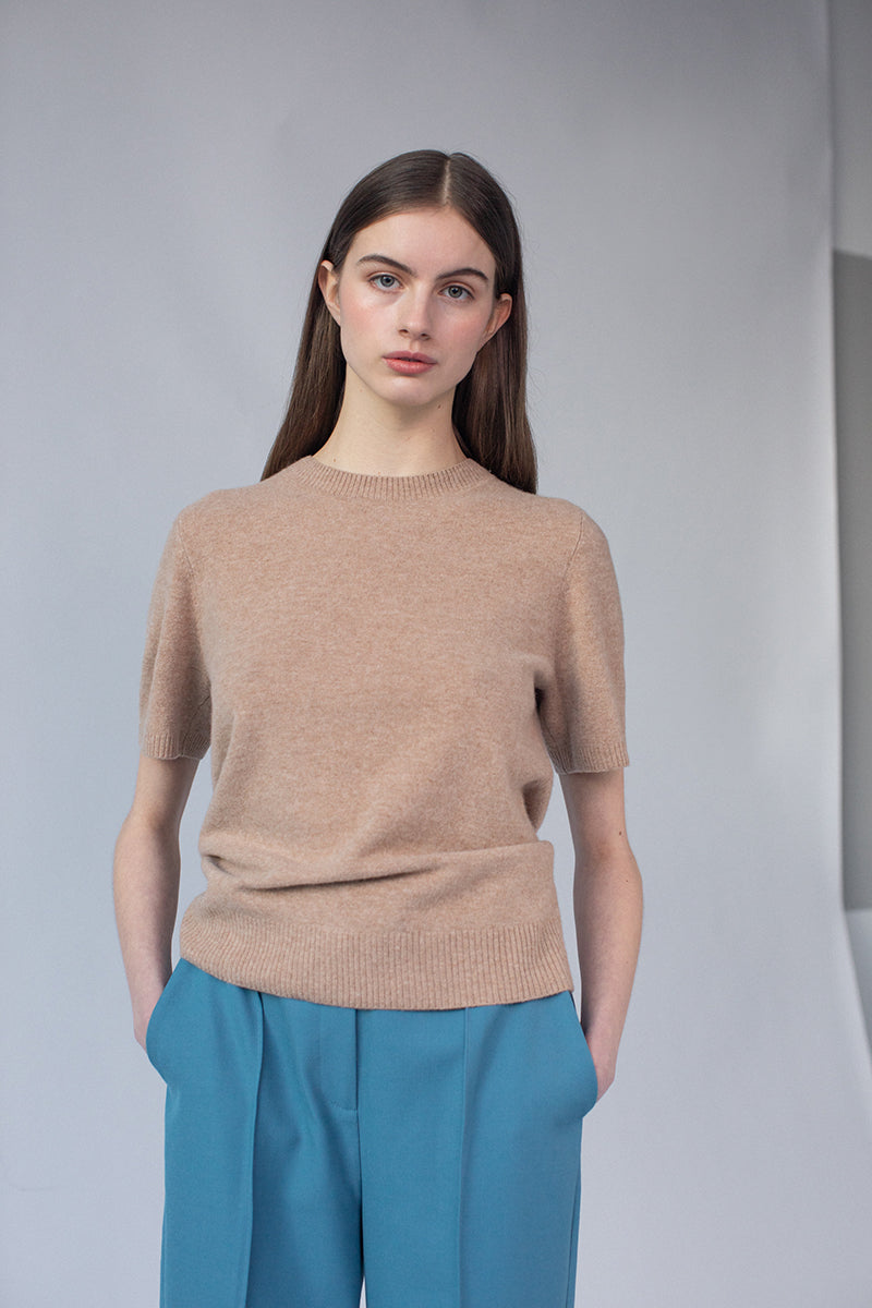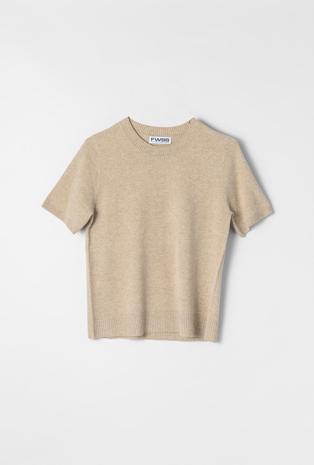 The FWSS Calico Knit Tee is knitted from a soft brushed wool. This delicate t-shirt is a perfect closet staple as it pairs easily with any outfit. It has an elegant crew neckline and relaxed fit. The plush wool feels soft and comfortable against the skin. Style it with the FWSS Barbro Wide Leg for a chic 90’s look.