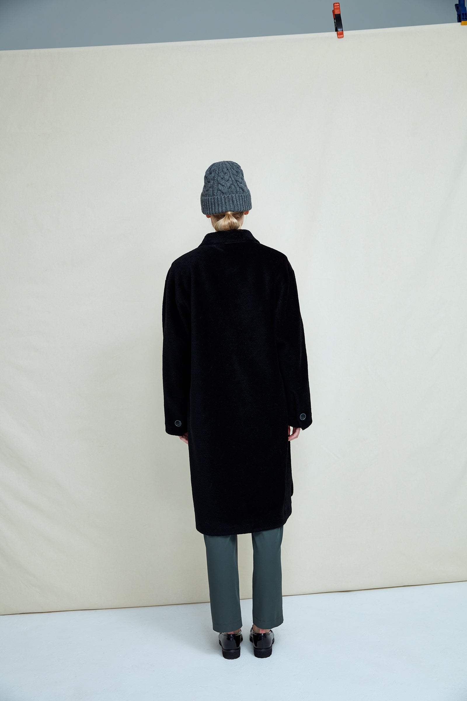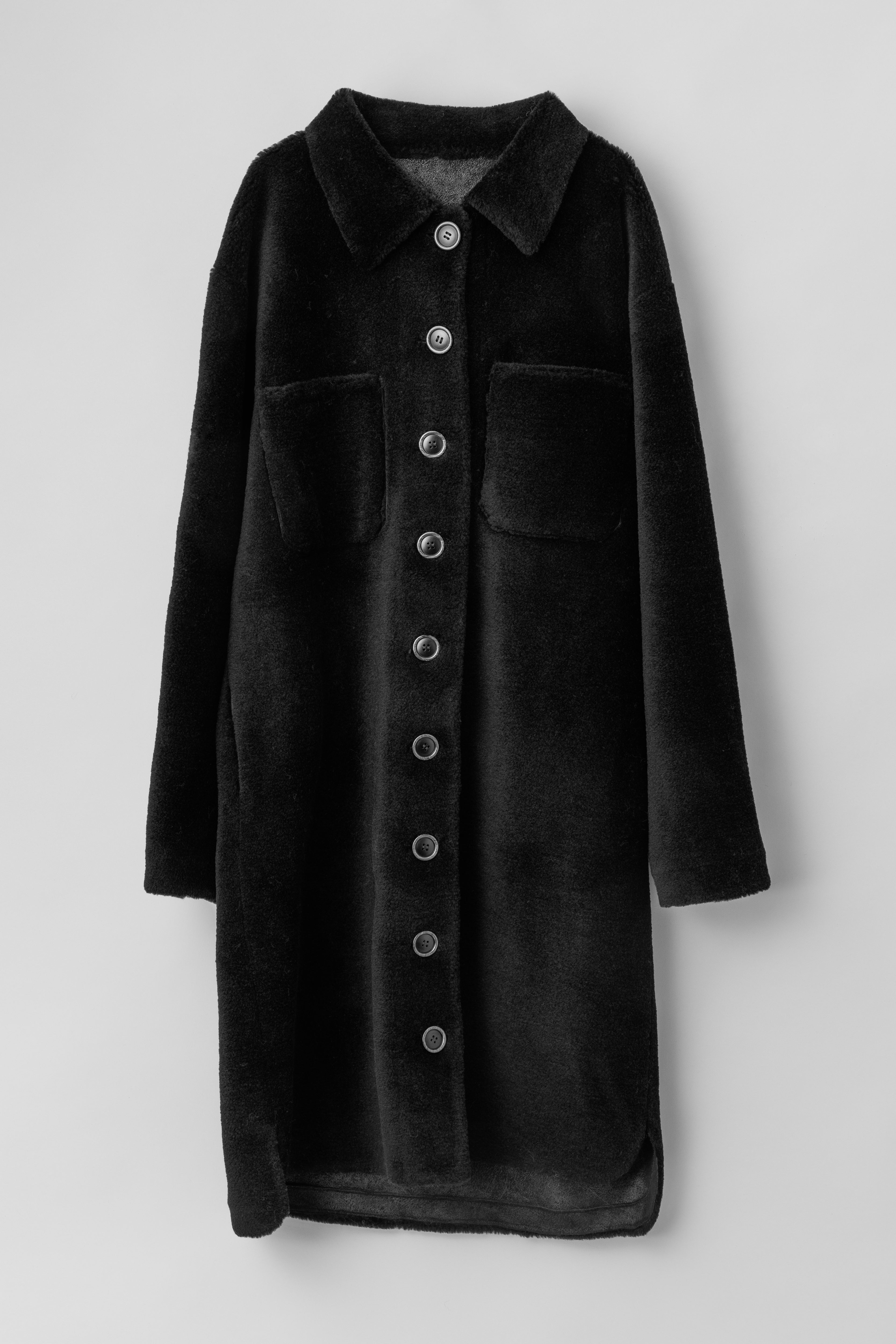 The FWSS Sealiner Teddy is a loose fit coat inspired by our previous versions of the popular Sealiner jacket and shirt. This time in a friendly teddy fur, made by fine lambswool fibers carefully knitted into a polyester backing. The quality has the warmth, softness and comfort from the lambswool and the stability and strength from its polyester backing – making for long-lasting and functional outerwear, without compromising on design and aesthetics. With a classic collar, patch pockets, a curved hemline and tortoise shell buttons. It is super warm and cosy and ideal for colder seasons.