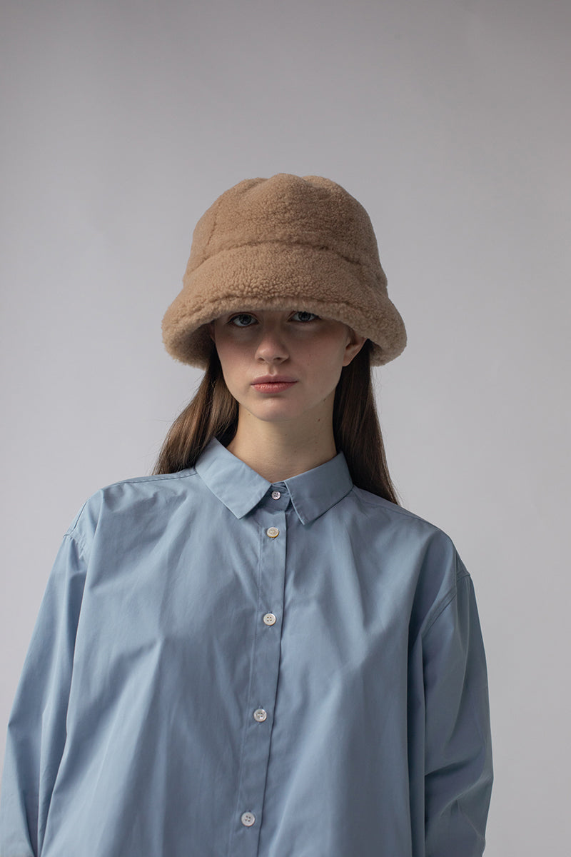 The FWSS Mamsen Shearling is a new teddy addition to the Mamsen family. This bucket hat is cut from a soft animal friendly teddy fur. It has a round shape with a subtle brim that rests comfortably on the head. Style it with the FWSS Iris Lamb Shearling Jacket for a nonchalant look.