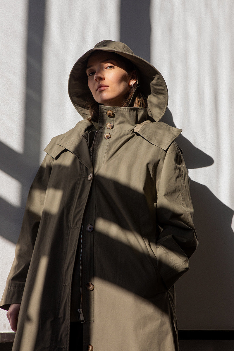 100% Cotton Loft: 100% Recycled Polyester. Do not wash, do not bleach, do not tumble dry, iron on low heat with cloth and steam. Wipe clean with damp cloth and dry clean only. Our garments are made to last. Care for both your garment and our planet, wash in low temperature and not more than necessary.