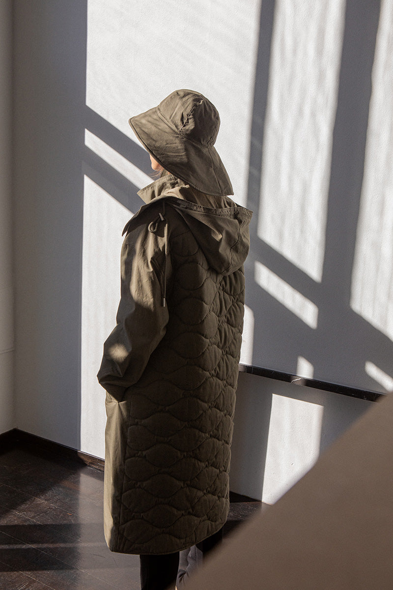 The FWSS How Deep Cotton Parka is an asymmetric parka made from 100% cotton loft, padded with 100% recycled polyester. The parka has a water-repellent shell that features quilt details on the back, diagonal pockets, drawstring hem and a generous hoodie. A practical and cool piece for everyday use.
