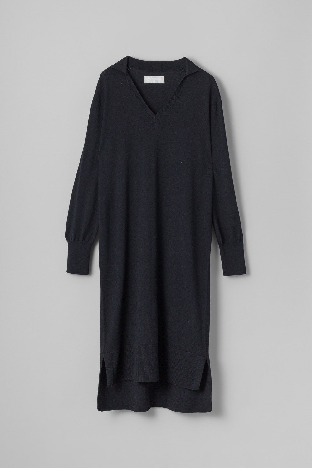The FWSS By Your Side is a comfortable knitted midi dress in a fine 100% merino wool yarn. Pleasant and clean features such as the polo collar, open V-neck, a center back linked seam, slit in the side seams and detailed with ribbed cuffs and hem. Regular fit at shoulders but relaxed around body, making for a comfy and durable wardrobe staple.