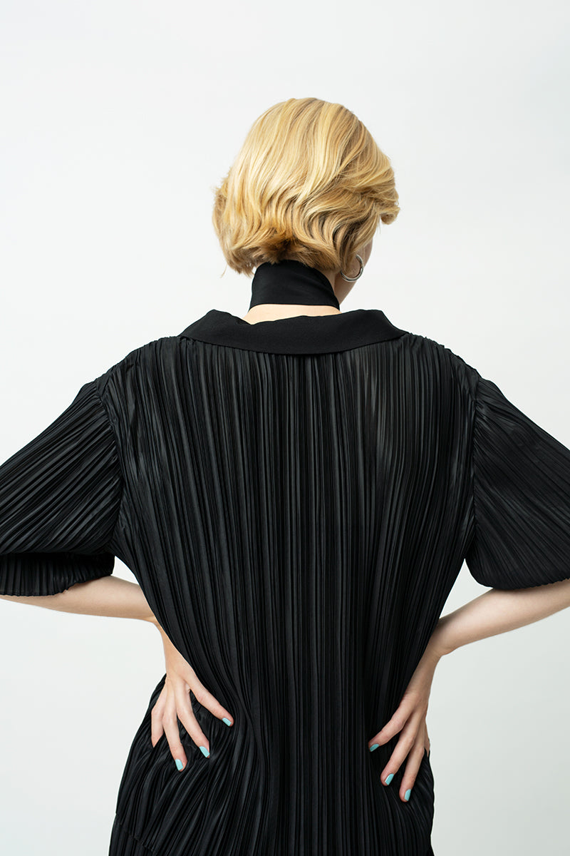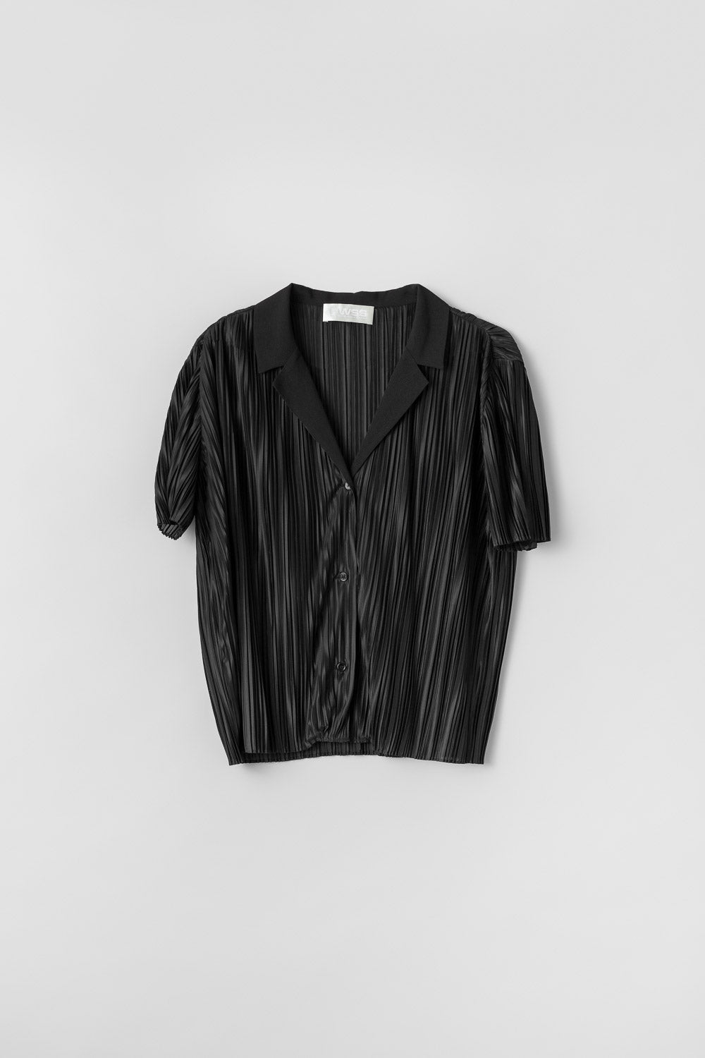 The FWSS Hong Kong Garden is a short sleeved shirt blouse cut from a lustrous and soft pleat fabric. Features a notched collar in contrasting 100% silk fabric, a relaxed fit and visible button stand in front. Wear it with our Ewa trouser or Tao Pleat skirt for a dreamy matching set.