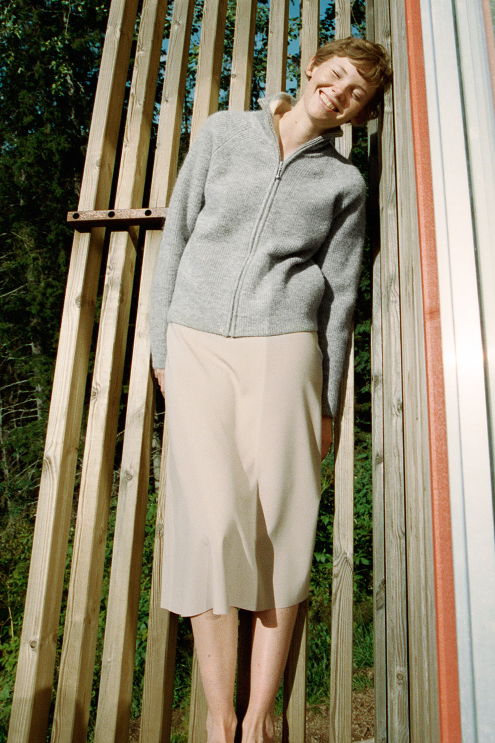 The FWSS Renata is an A-line midi-skirt for everyday wear. Cut form a stretchy high tech ponte fabric that is comfortable and crease-resistant. Features a slit on the side, top-stitch detailing, a clean laser-cut hem and a waistband with an overlapping flap. Zipper in the side for easy wear. A minimalistic style with an easy transition from work-to-play.