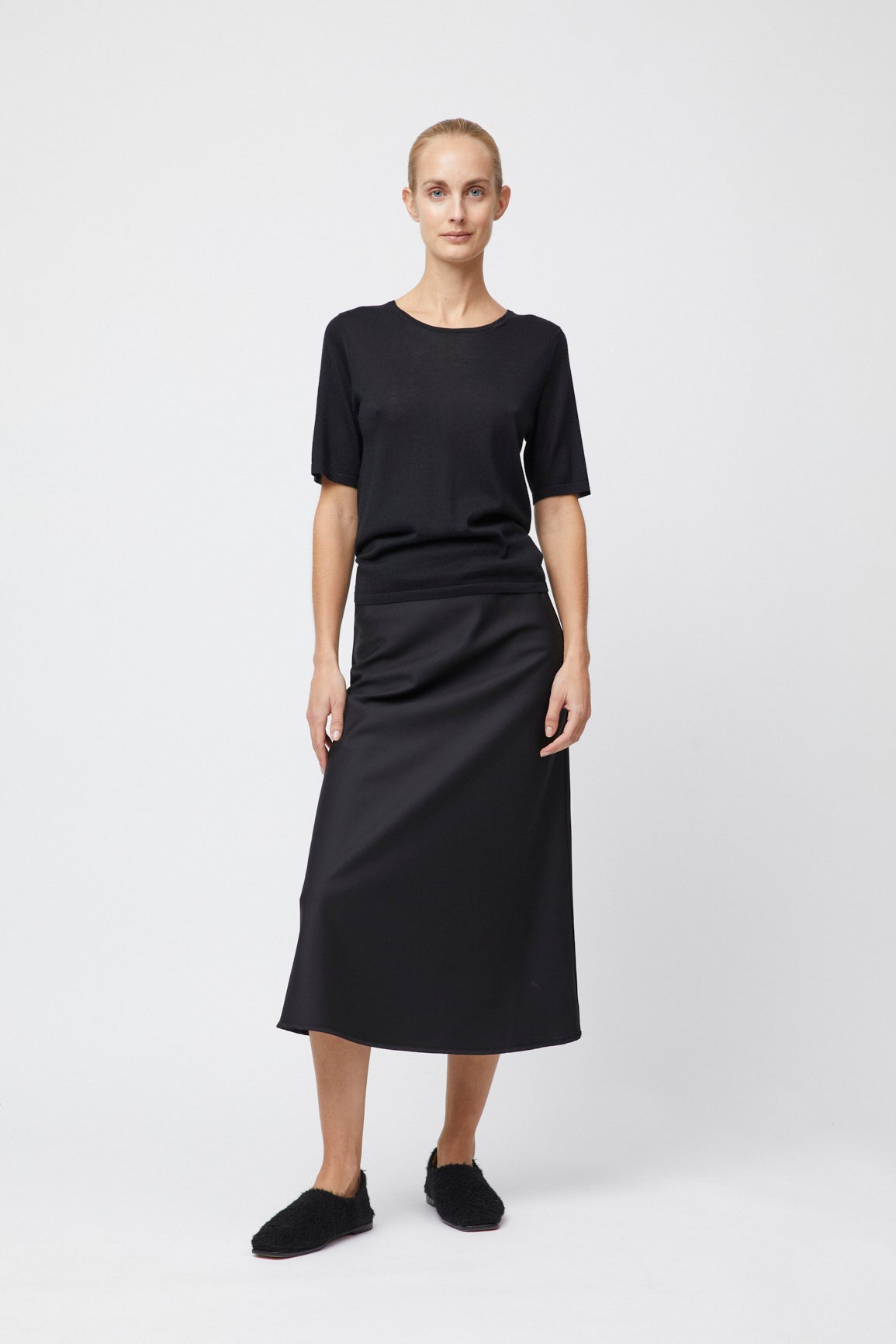 The FWSS Tailored Bias Cut Midi Skirt is updated in a slightly brushed wool blend for a smooth, elegant drape. Cut on the bias, it flatters the body and features an invisible side zipper. Perfect for both office and evening.