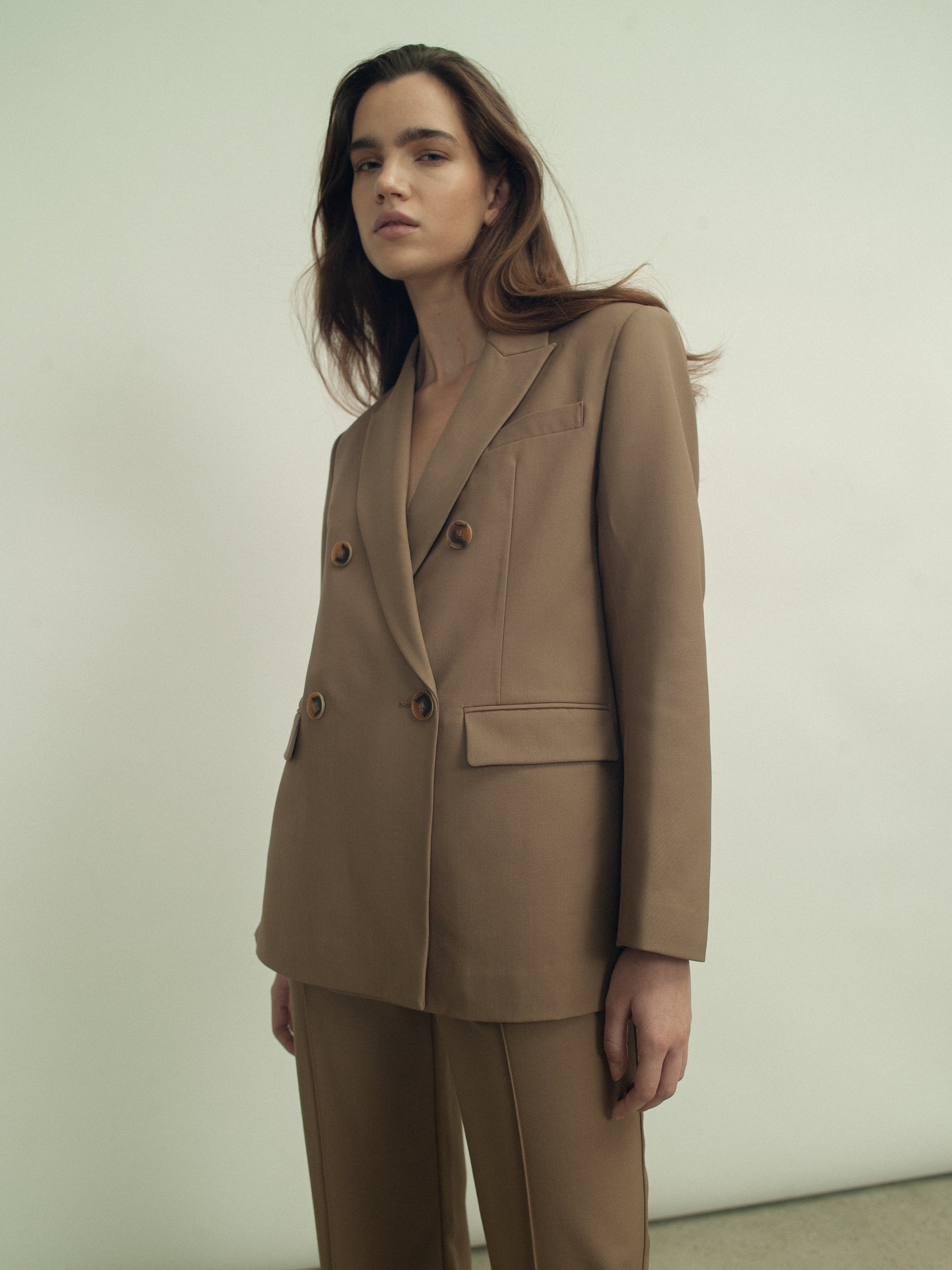 43% Wool 53% Polyester 4% Elastane, Lining: 100% Polyester. Do not wash, do not bleach, do not tumble dry, iron on low heat, dry clean only or spot rinse with damp cloth. Our garments are made to last. Care for both your garment and our planet, wash in low temperature and not more than necessary.