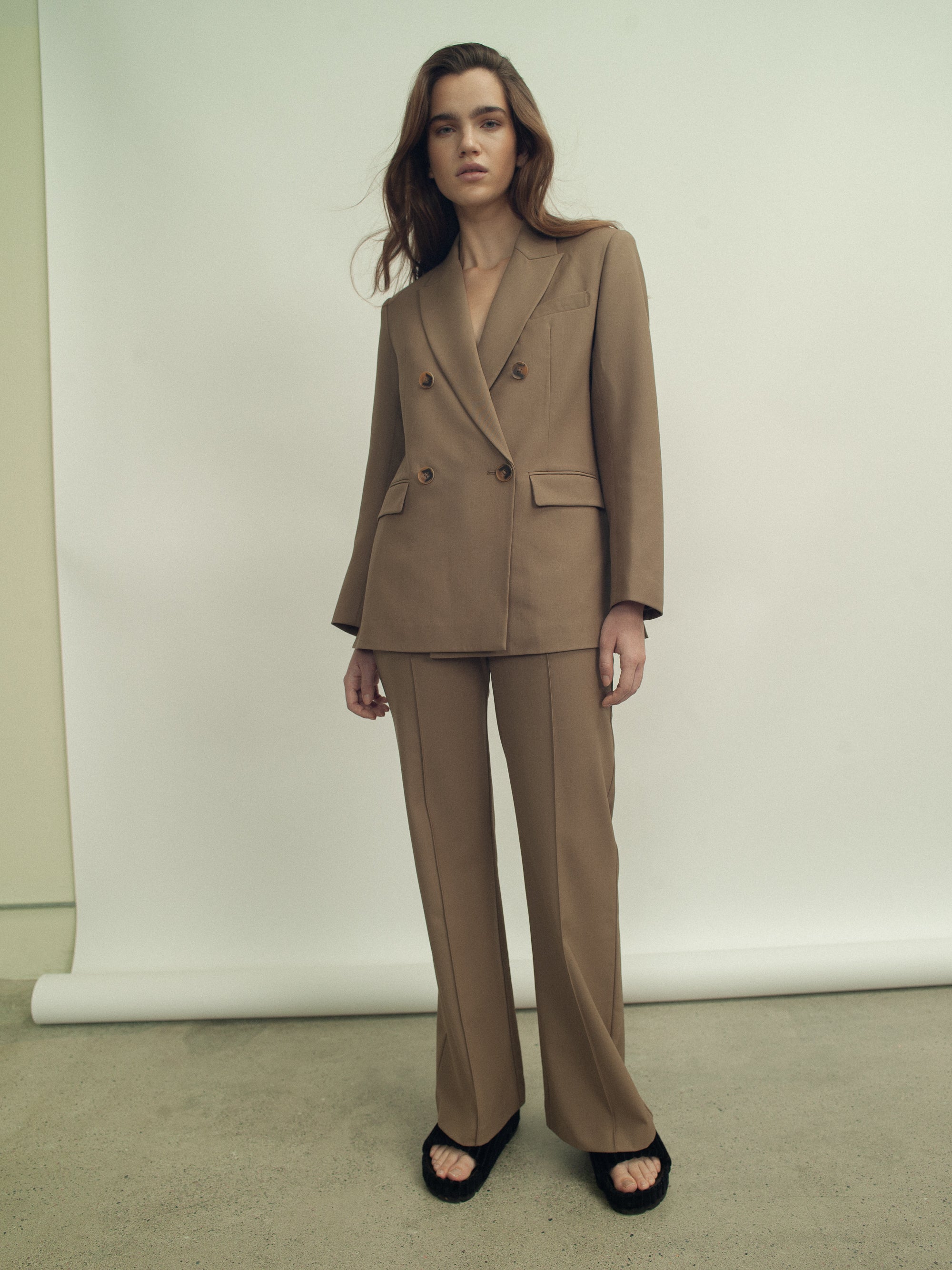 43% Wool 53% Polyester 4% Elastane, Lining: 100% Polyester. Do not wash, do not bleach, do not tumble dry, iron on low heat, dry clean only or spot rinse with damp cloth. Our garments are made to last. Care for both your garment and our planet, wash in low temperature and not more than necessary.