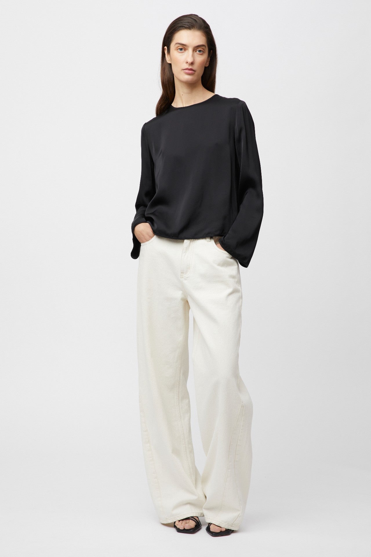 The FWSS Anouk Simple Longsleeve Viscose Blouse is crafted in 100% viscose with a luxurious handfeel and delicate sheen. The silhouette is slightly loose and moves delicately when worn. The sophisticated details make a seamless transition from casual to formal, with elevated trumpet shaped sleeves and a practical invisible zipper at back. The perfect staple blouse for day-to-day to evening wear. Style with FWSS Paloma Tailored Trousers and flats for a chic look.
