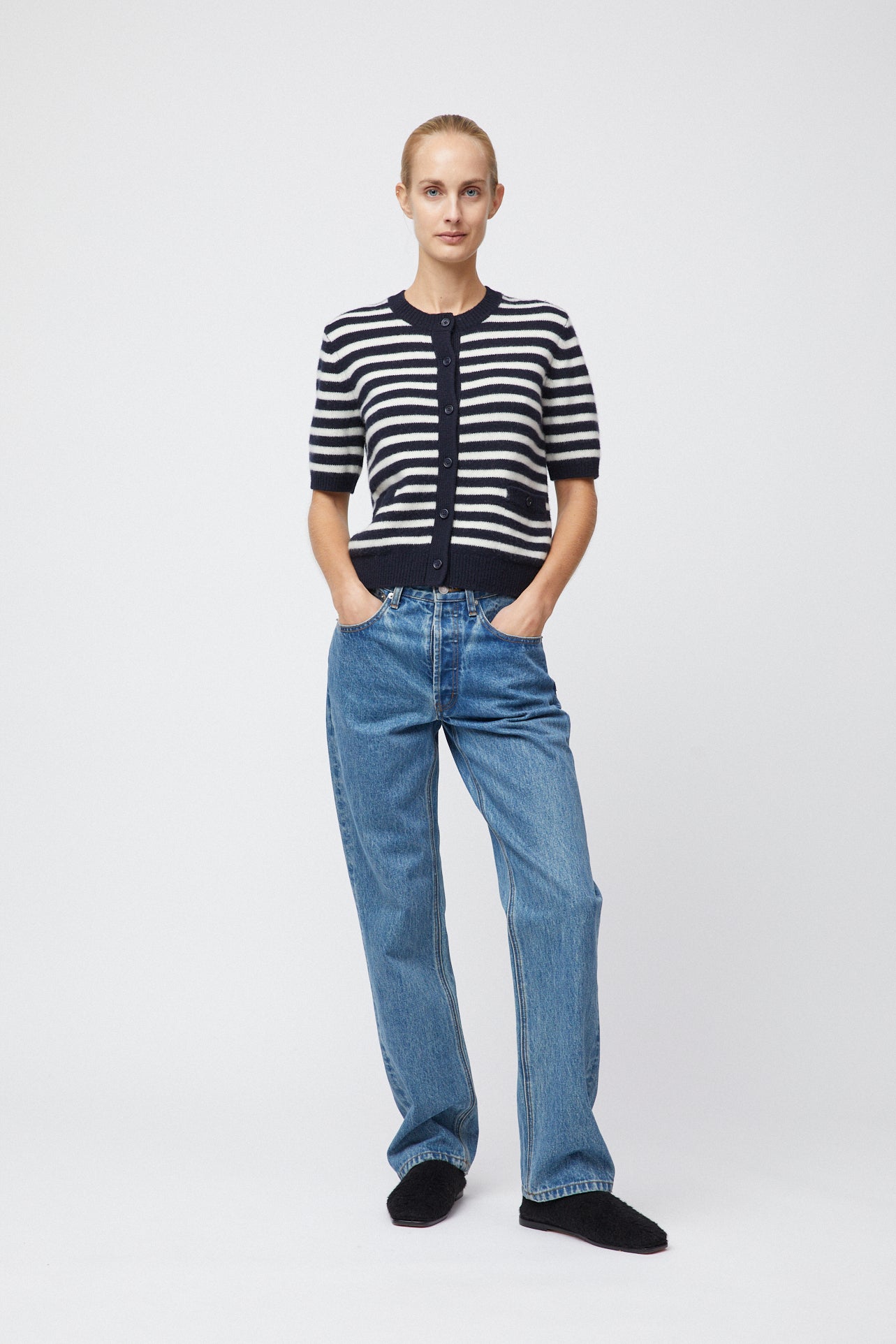 Toulouse Cardigan Tee Navy Snowflake Stripe