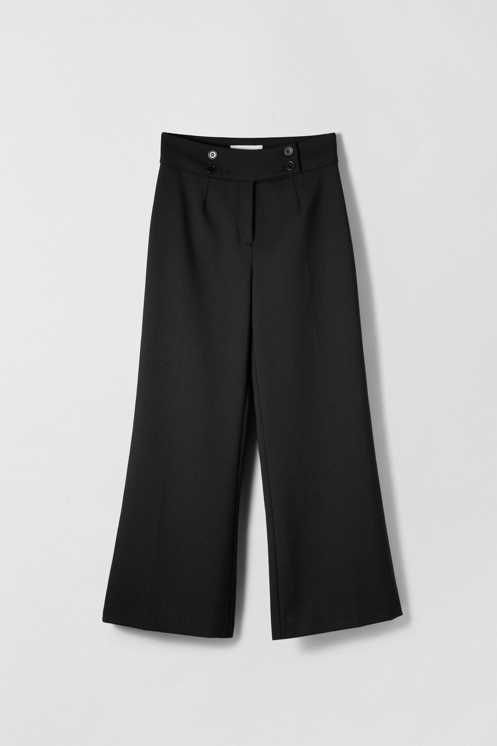Mid waist trousers with slightly flared shaped legs.