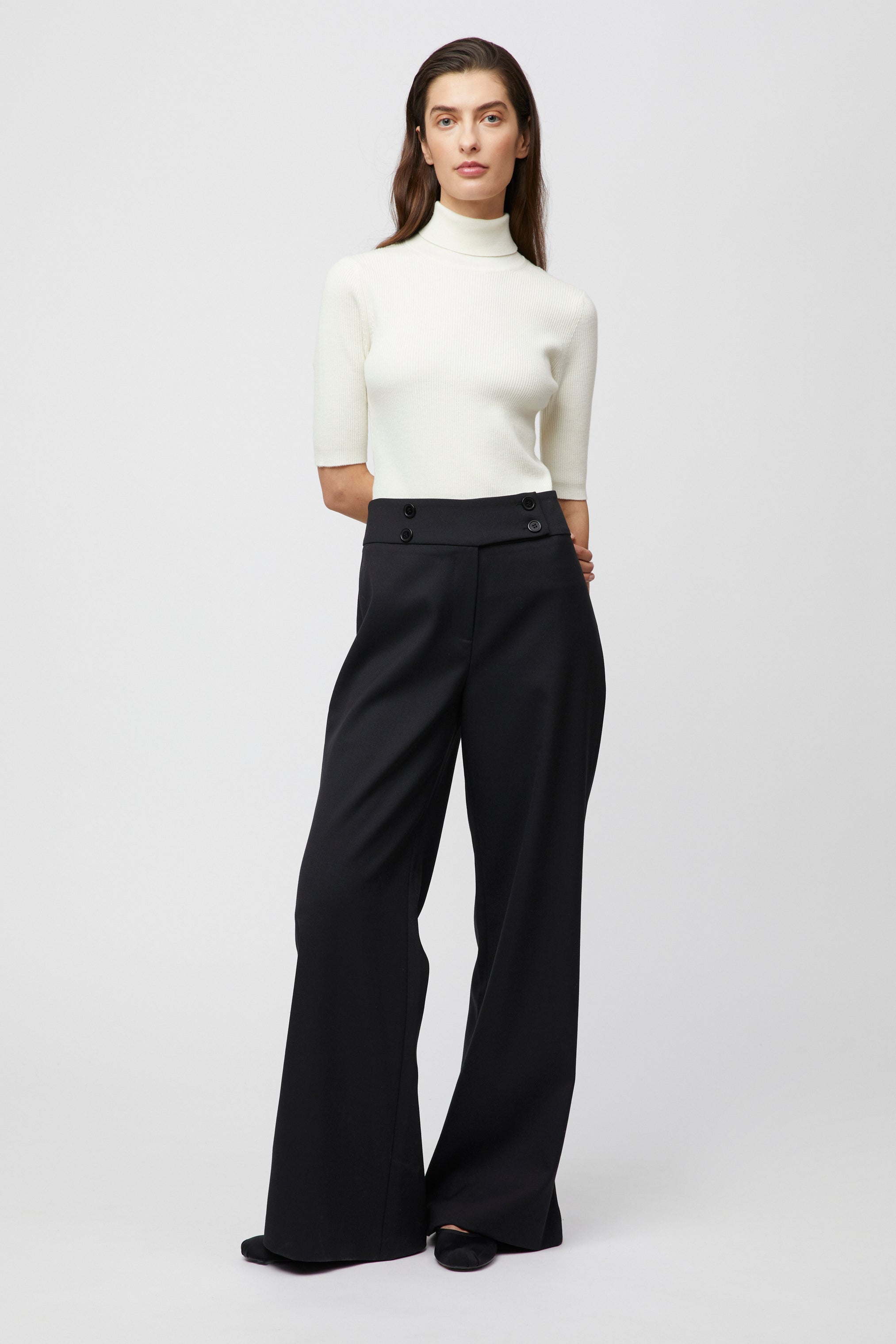 The FWSS Skipper Trousers are sophisticated mid-waist trousers with a double button closing and a practical zipper at center front. The wide, slightly flared legs provide a delicate silhouette. These trousers are comfortable and smart and will become everyday favorites. Style with the FWSS Julie Sweater or the FWSS Oxford Coastal shirt for an elevated vibe.