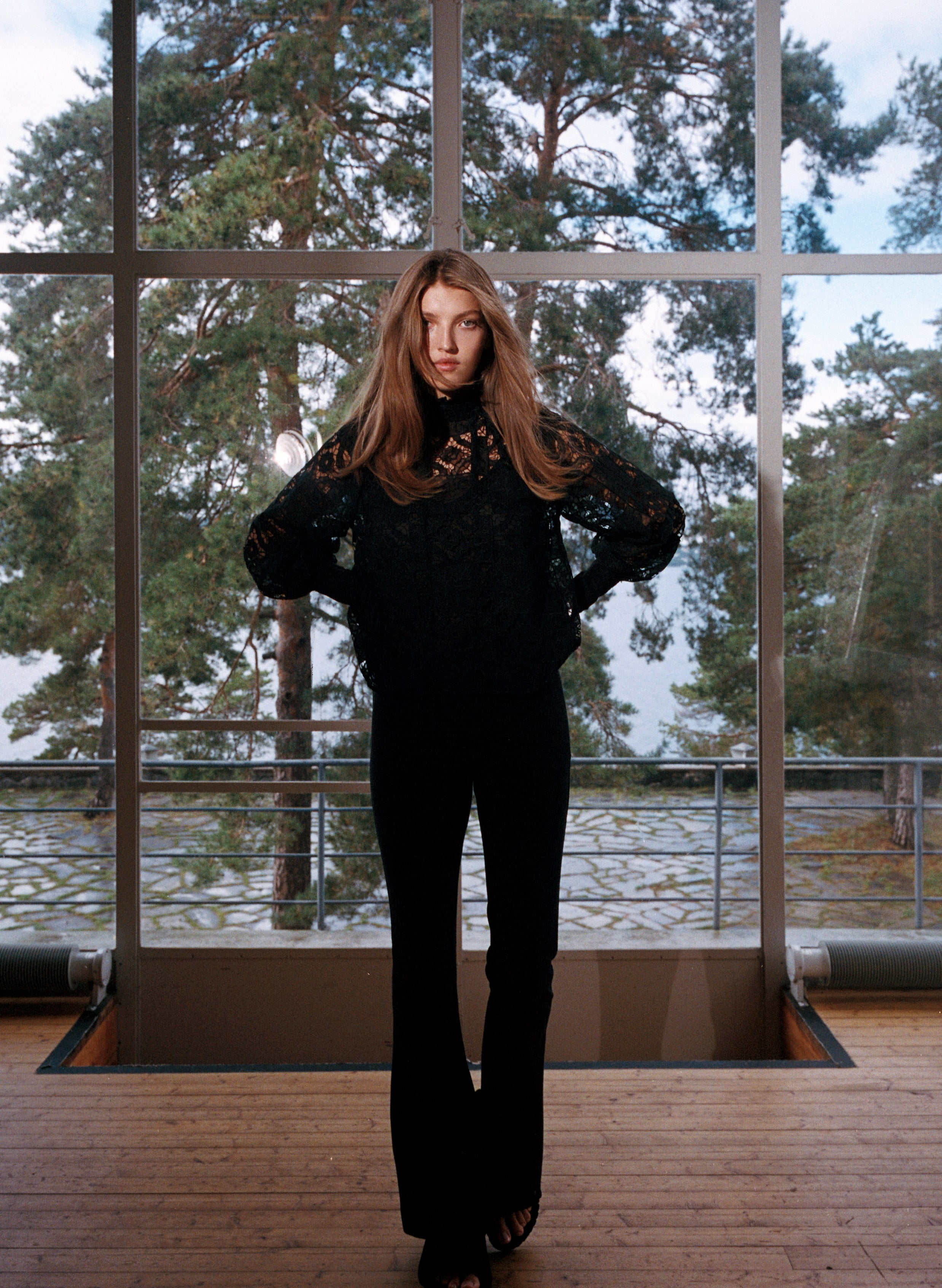 The FWSS Broderie Anglaise Top is a versatile addition to the working wardrobe. Features delicate detailing including a high Victorian neckline, balloon shaped sleeves and button-down cuffs. Can be worn casually with a pair of jeans or elevated for event dressing. Pair it with the FWSS Barbro Wide Leg trousers for a sharp look.