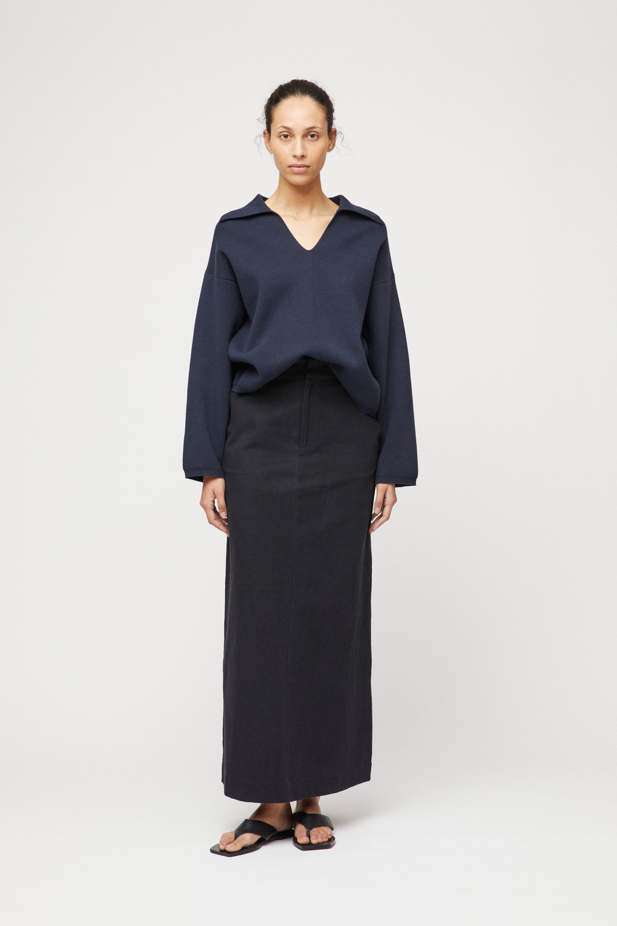 The FWSS Cotton Storm Knit Jumper is delicately knitted in 100% extra-fine cotton. This season the popular jumper is designed in a full Milano knit cotton quality, that provides a natural cooling effect, presented in neutral hues and delicate vanilla stripes. The nicely cut V-neck, sharp collar, and relaxed silhouette with added structure, provide for an exquisite fit, making this luxurious jumper the perfect choice for summer. For an effortless outfit, style with the FWSS Salt Denim Skirt.