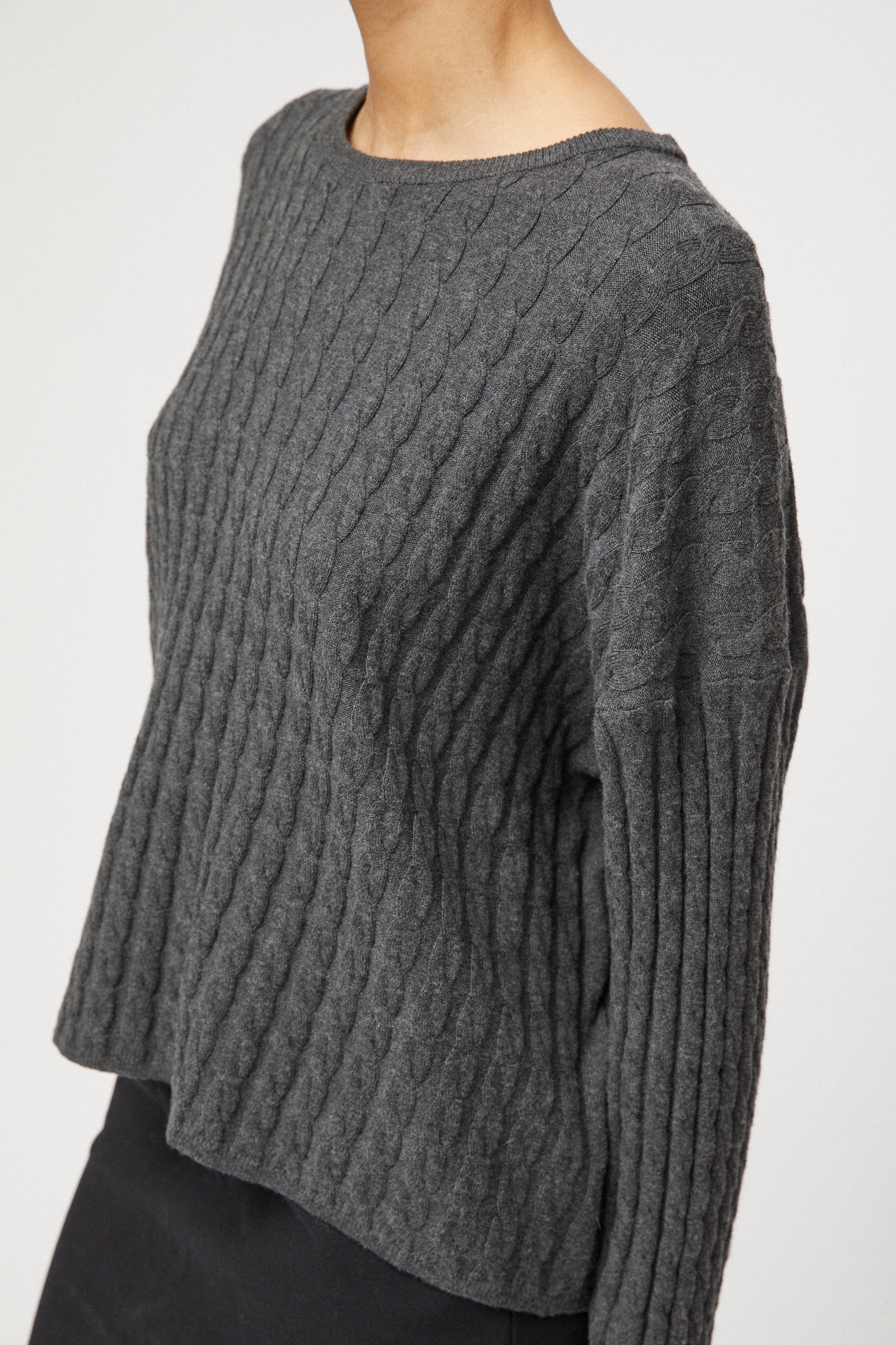 The FWSS Crew Cable Knit Sweater is knitted in a lush wool and cotton blend. Crafted from a classic cable knit pattern, it’s designed in an oversized and relaxed fit with slightly added length to sleeves, combining comfort with elegance. The delicate crew neck adds a touch of 90s simplicity, while the fully fashioned details at the back elevate its sophistication. Style with FWSS Salt Denim Skirt and loafers for a chic summer outfit.