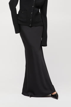 The FWSS Margot Turtleneck Tee, made from extrafine merino wool, offers a soft, casual turtleneck with a rolled edge. Its comfortable fit makes it ideal for layering or wearing solo. Pair it with the FWSS Bias Cut Maxi Skirt for a chic, effortless style.
