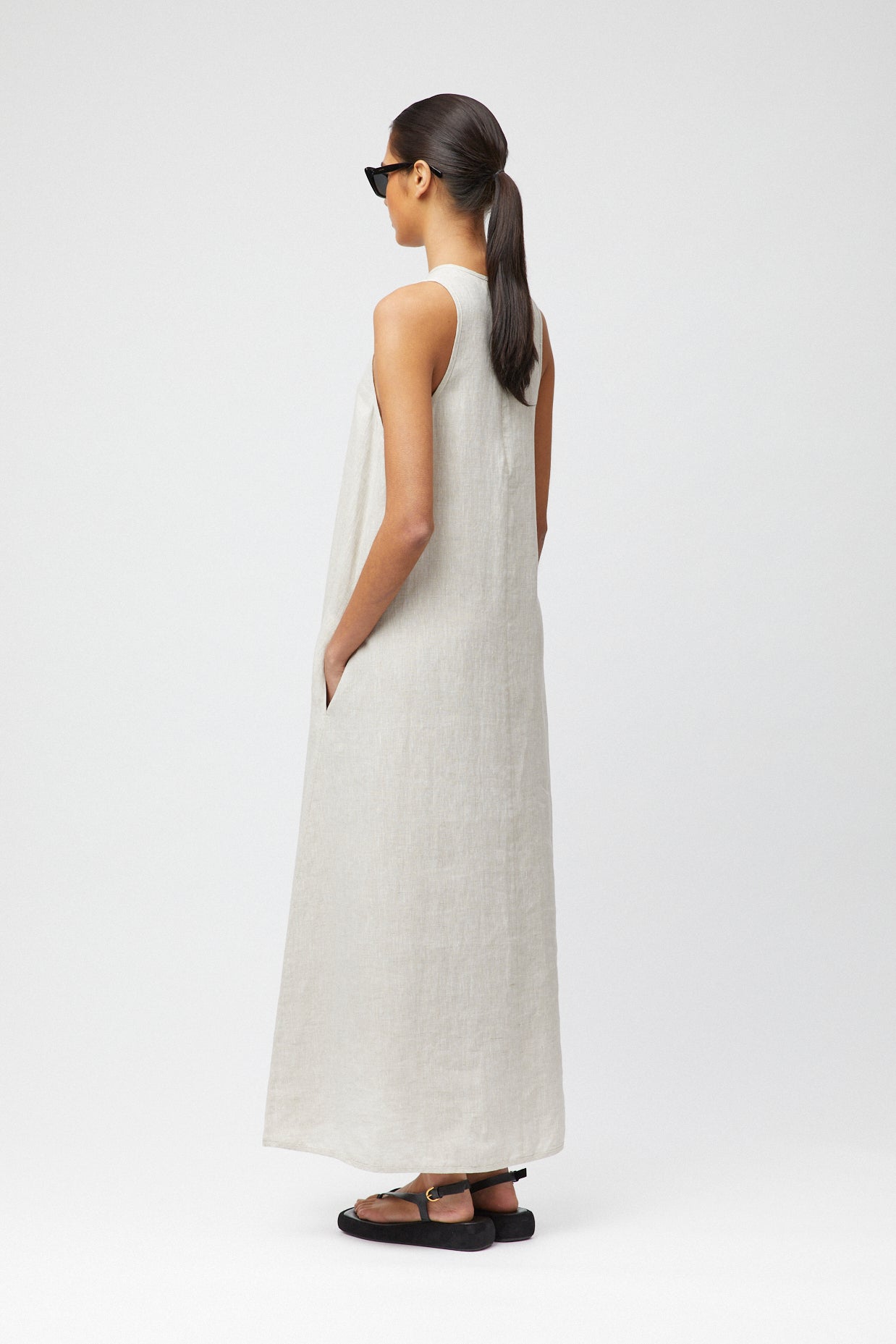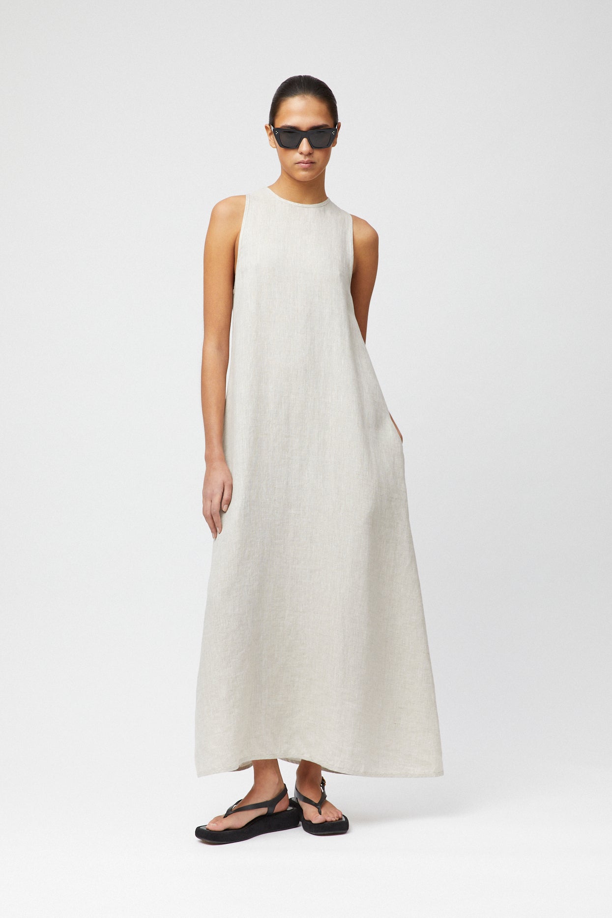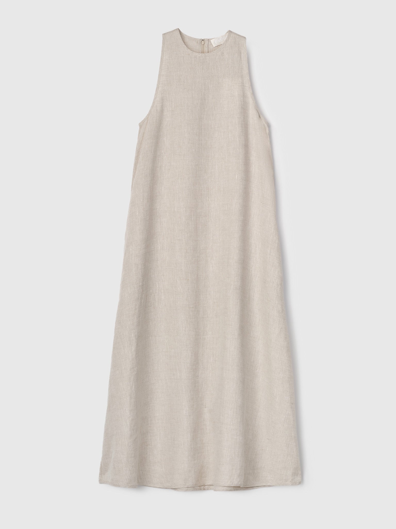 The FWSS Esplanade Linen Maxi Dress is cut from 100% soft linen and designed with an airy A-line silhouette. Featuring side seam pockets and an invisible back zipper, it combines practicality with ease. A versatile dress that flows from beach days to garden parties.