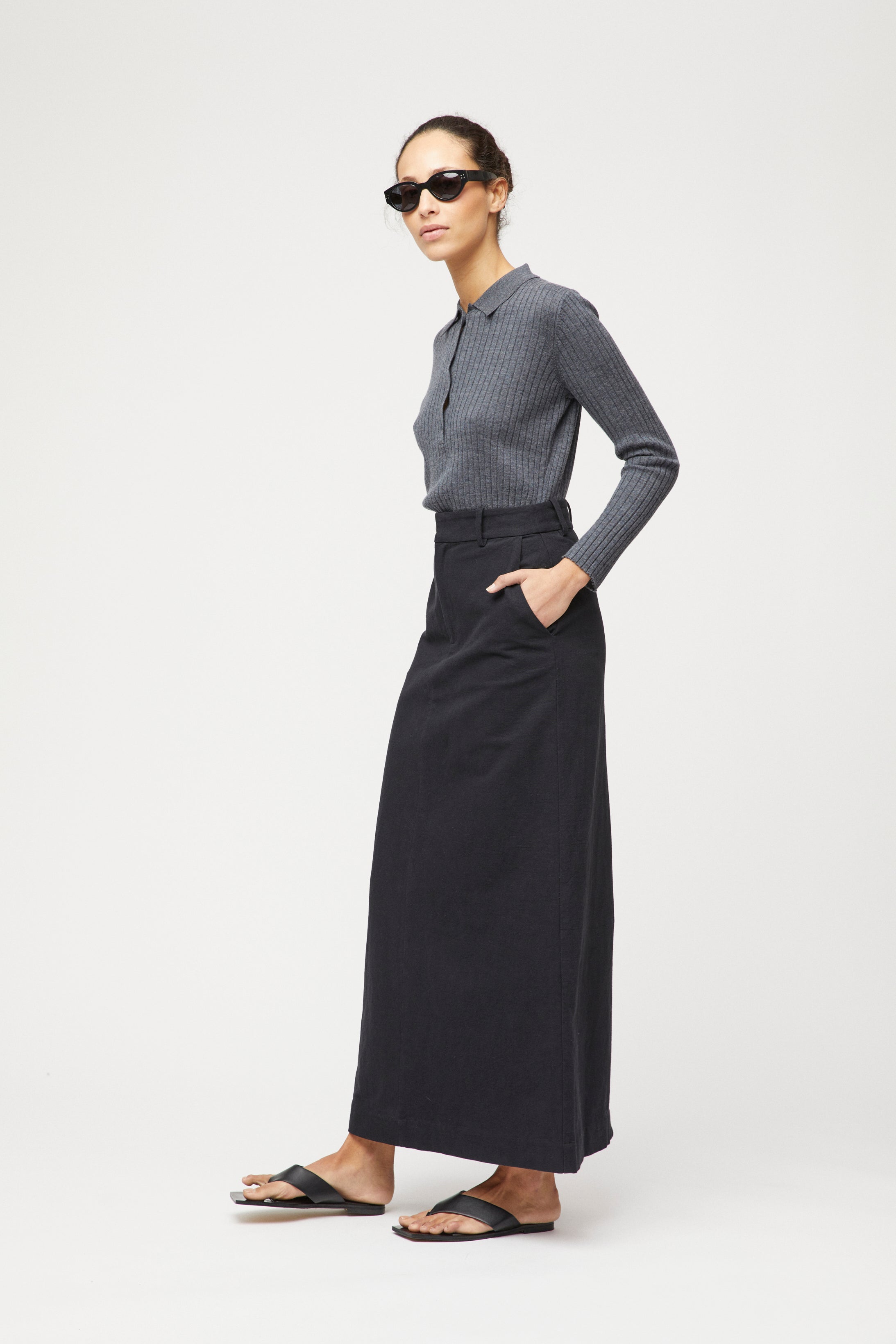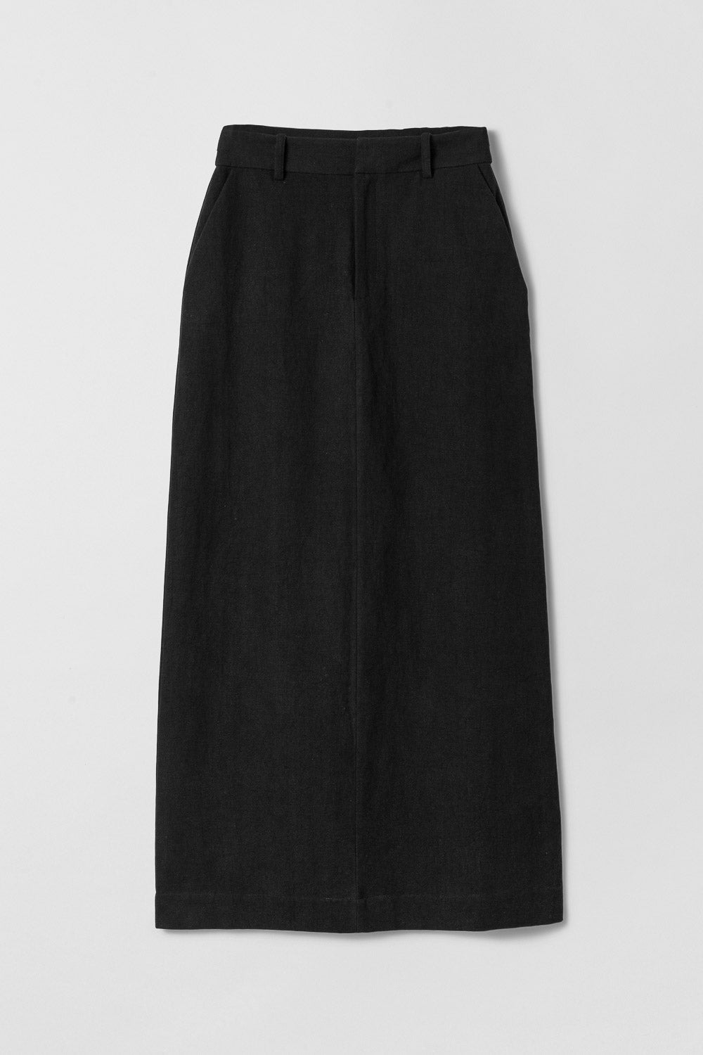 Linen Côte d'Azur Maxi Skirt Jet Black