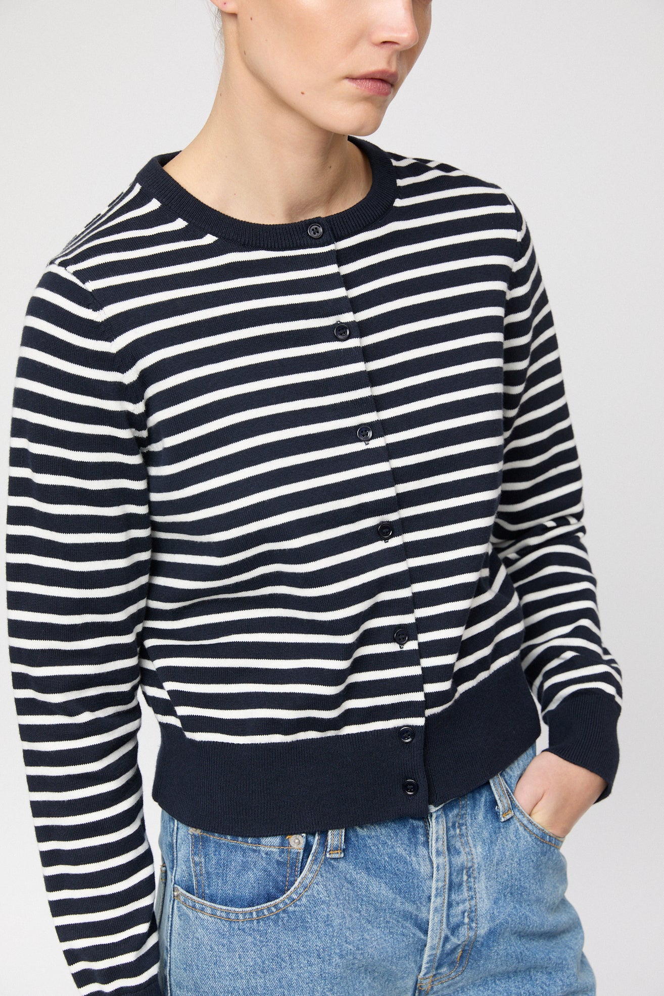 Cotton Cashmere Cardigan Cream Stripe