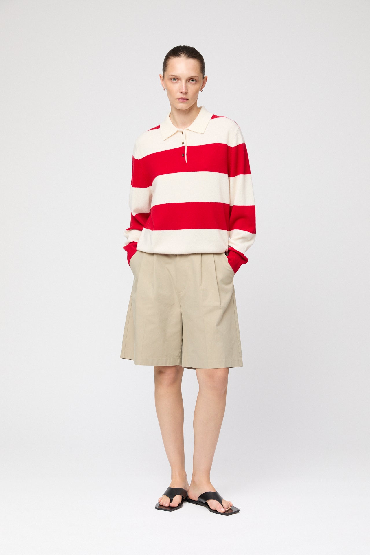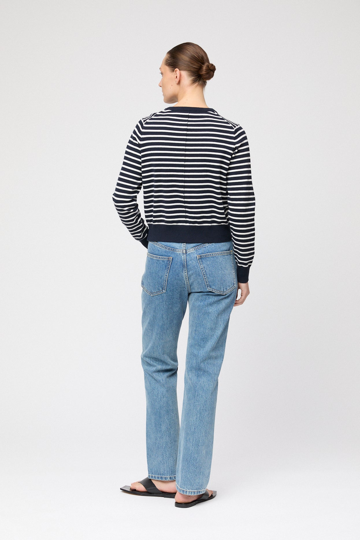 Cotton Cashmere Cardigan Tee Cream Stripe