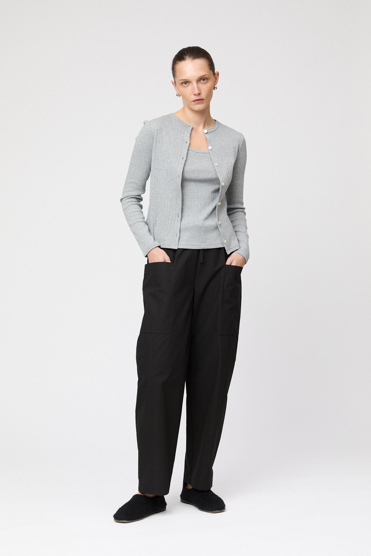 Pointelle Classic Cardigan Gray Melange